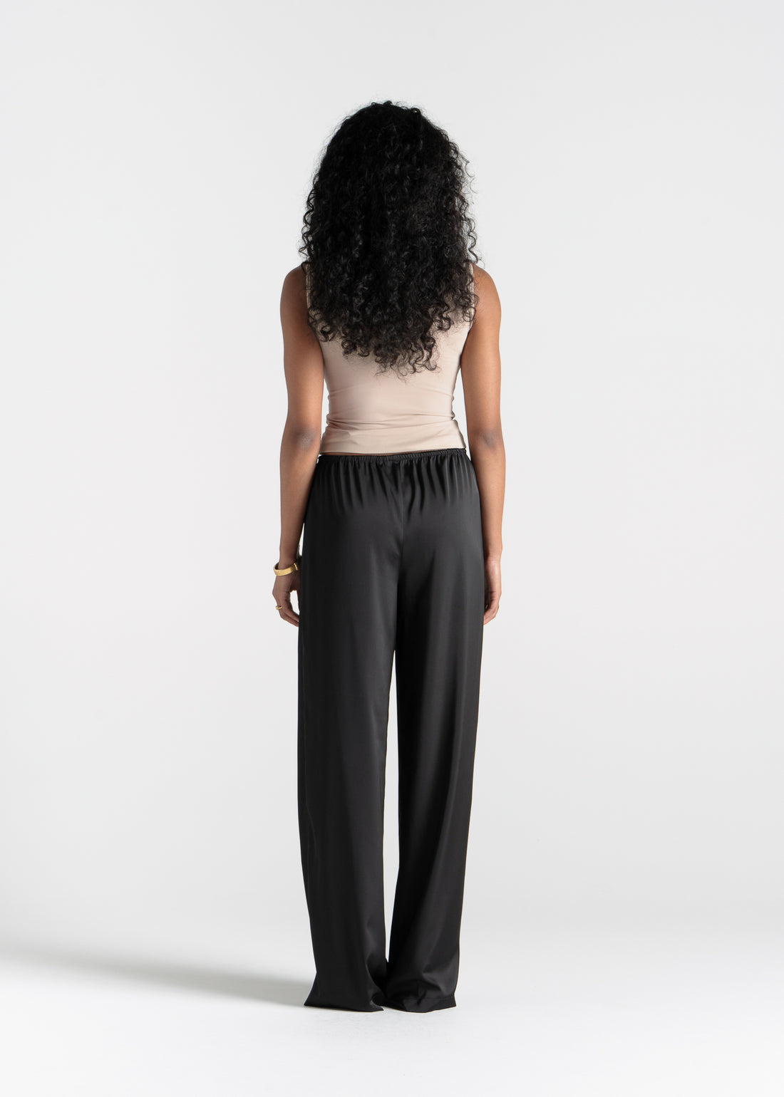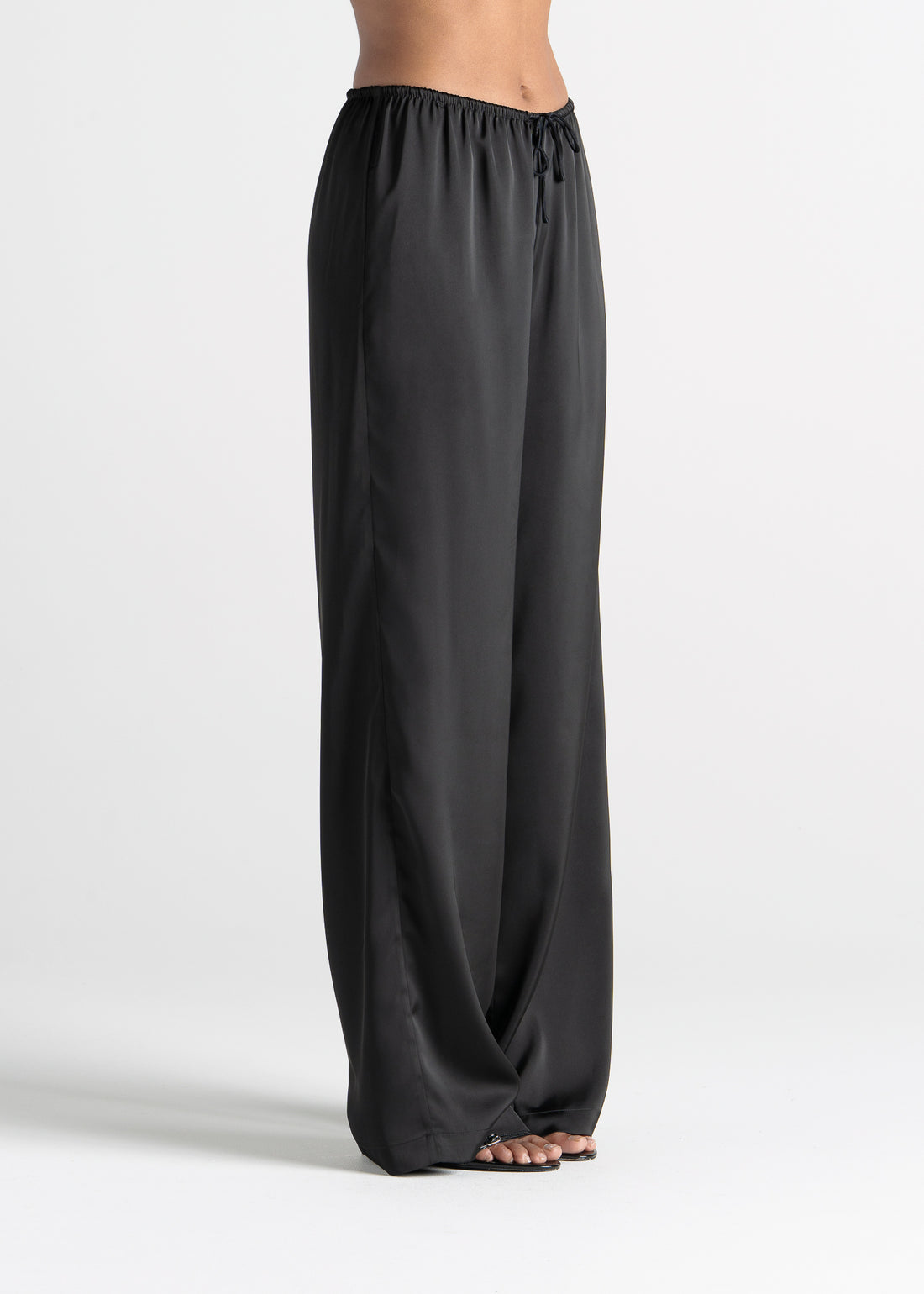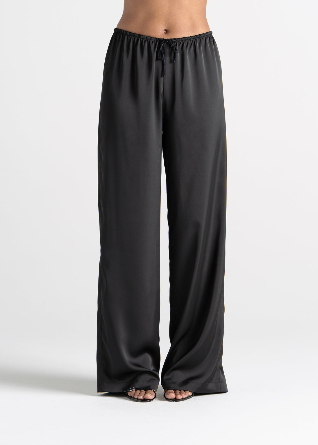 Adjustable drawstring Relaxed full-length leg Fluid satin trousers with a soft sheen and adjustable drawstring...
