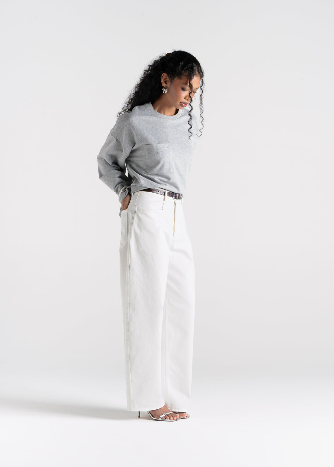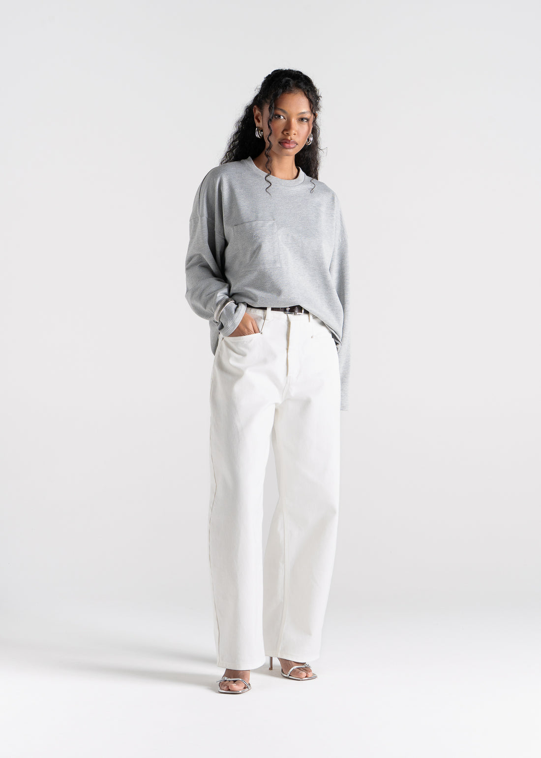 Brady Oversized Long Sleeve Top - Grey