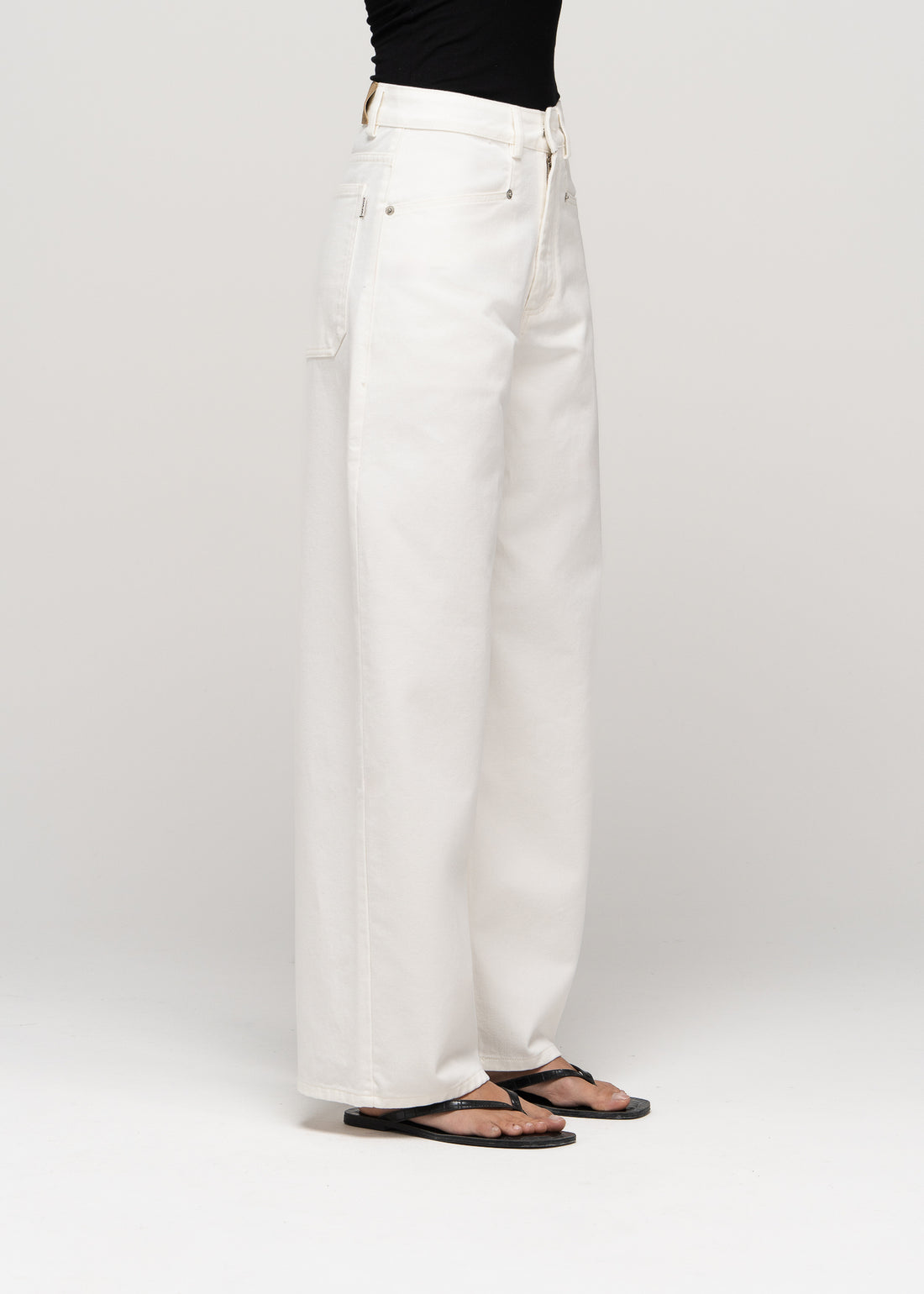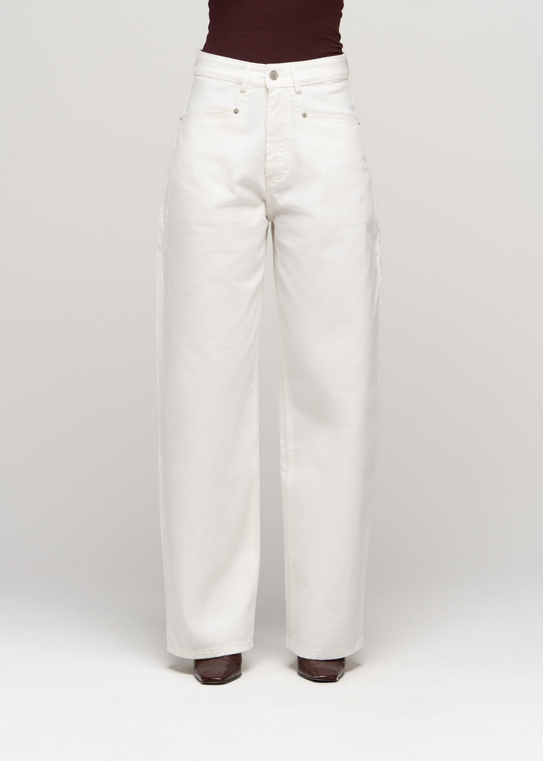 Premium rigid denim Relaxed barrel-leg fit These pants fit big. Size down for a more...