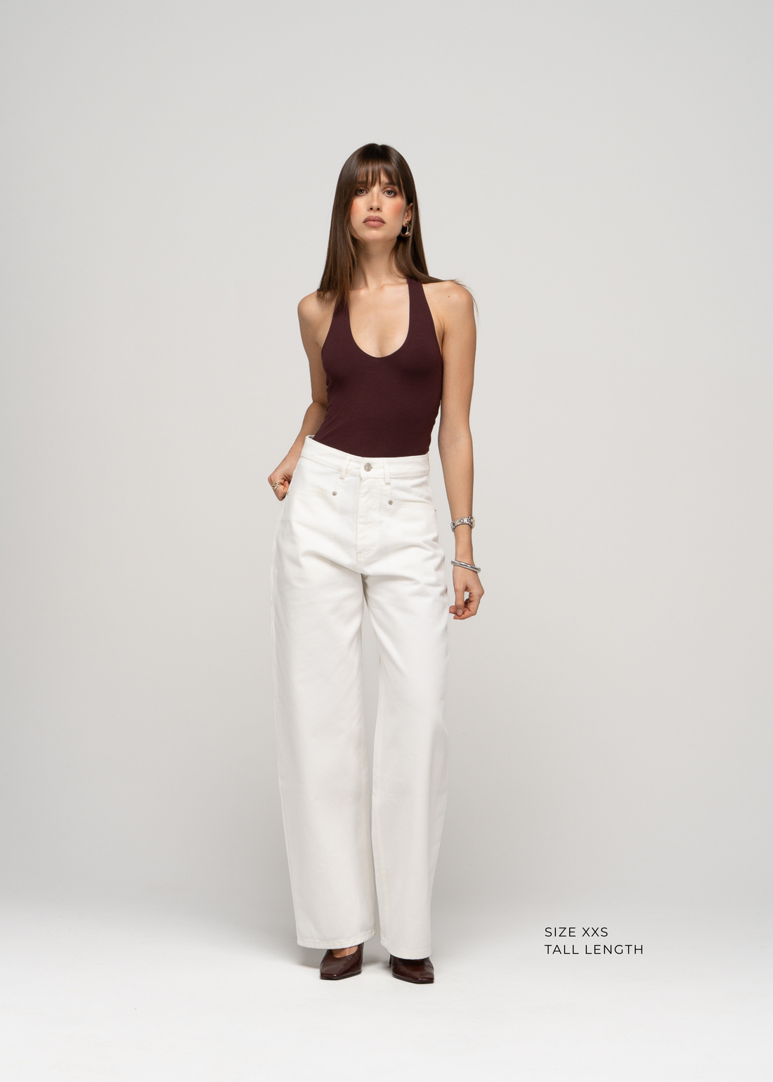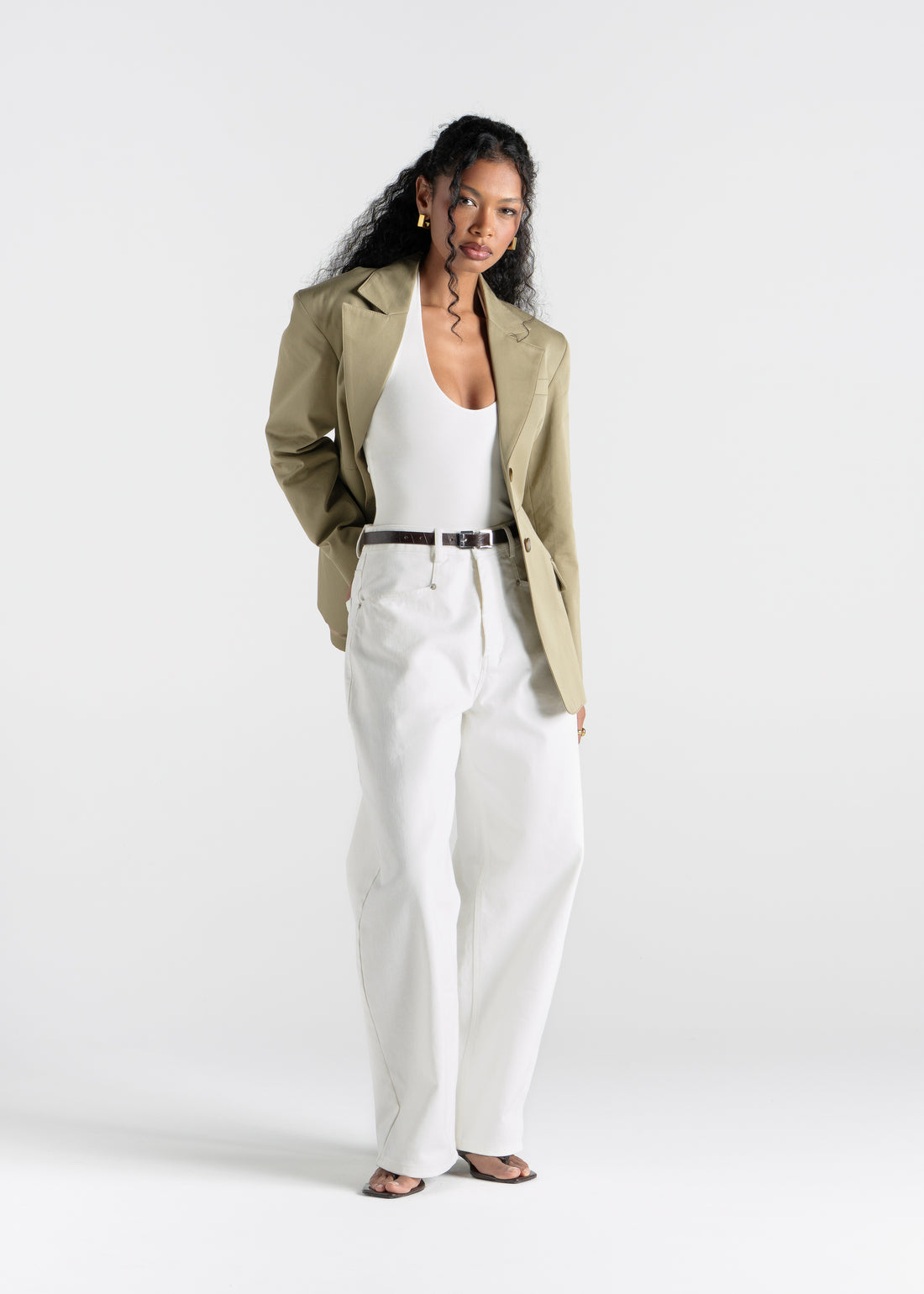 High-waisted tailored trousers Full-length, flare-leg cut Clean front with subtle seams Stretchy fabric for comfort...