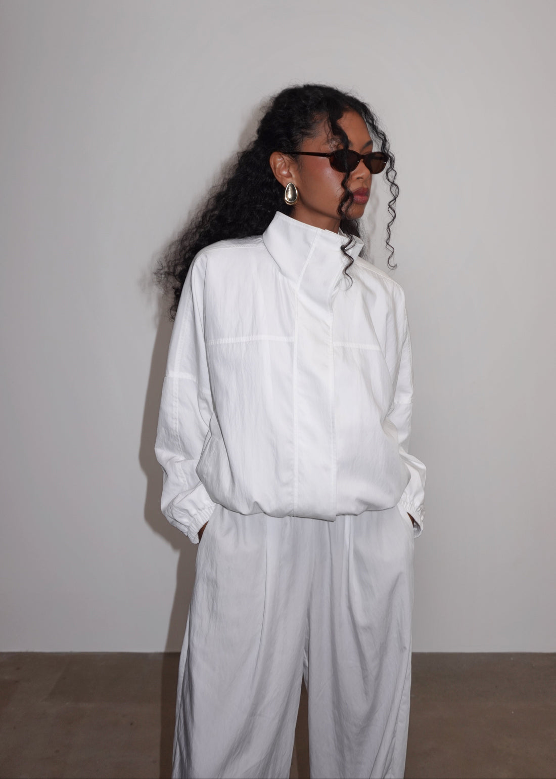 Carter High Neck Windbreaker Jacket – Ivory