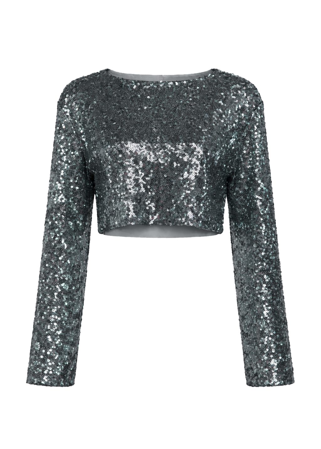 Rue Sequin Cropped Long Sleeve - Dark Sage Green