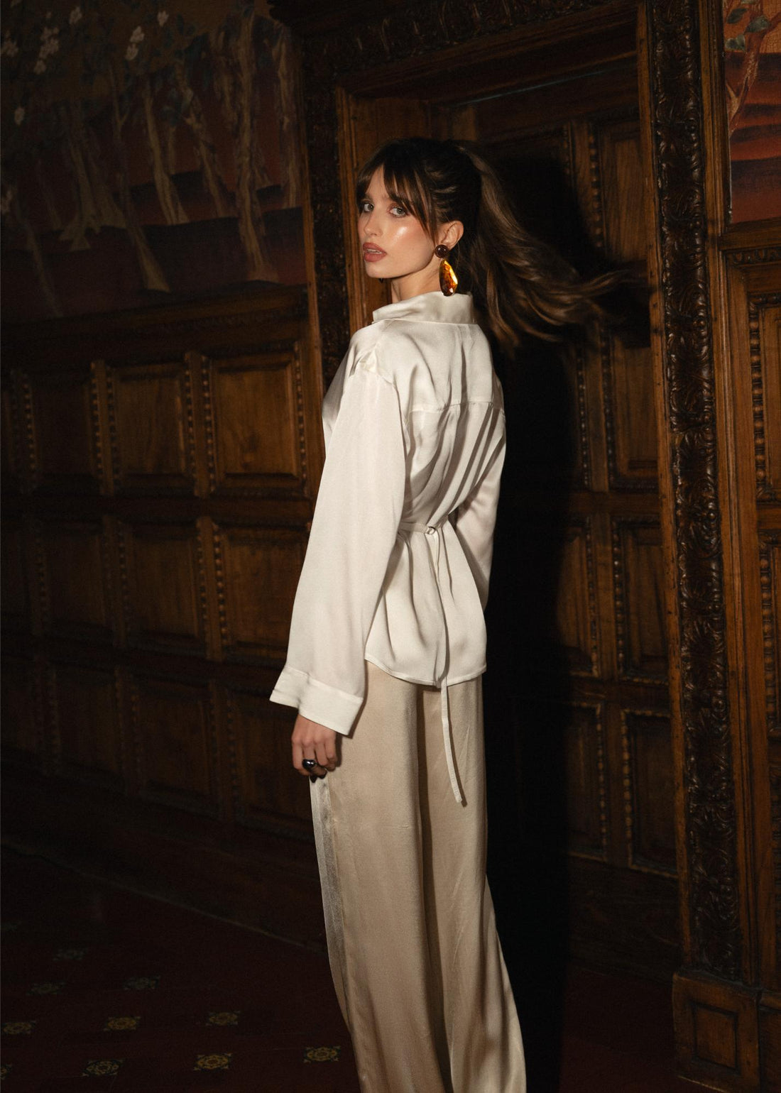 Straight hem with optional tie fastening Wear it loose for a relaxed silhouette or tied...