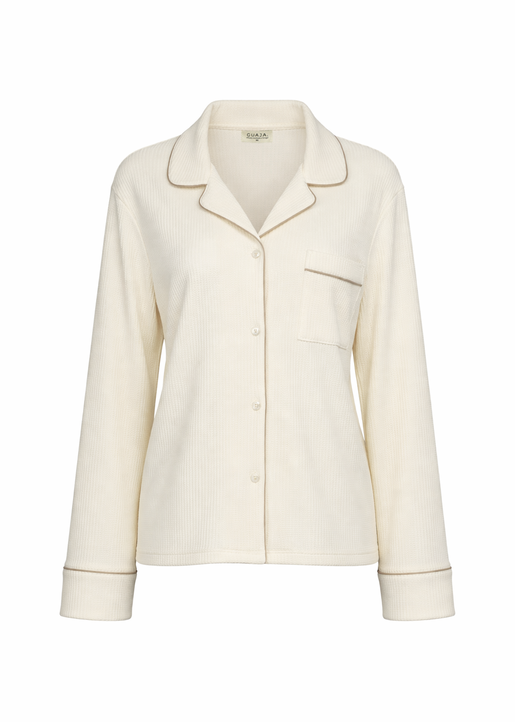 Extra soft and comfy textured knit mesh Relaxed shirt with matching wide-leg pants Pants feature...