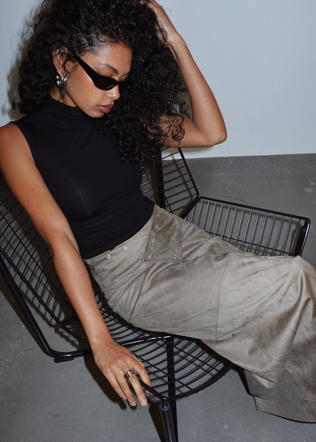 Synthetic suede skirt with a soft-touch finish Removable wrap-inspired waistband panel with metallic eyelets Very...