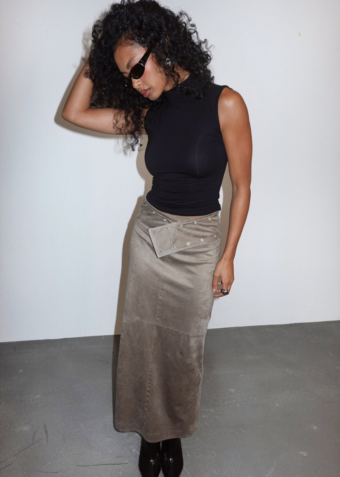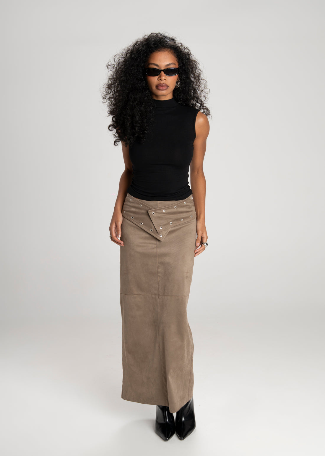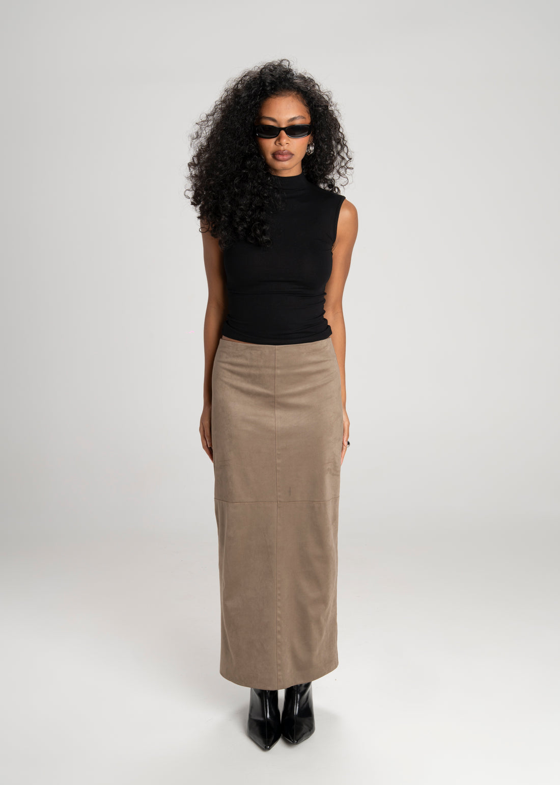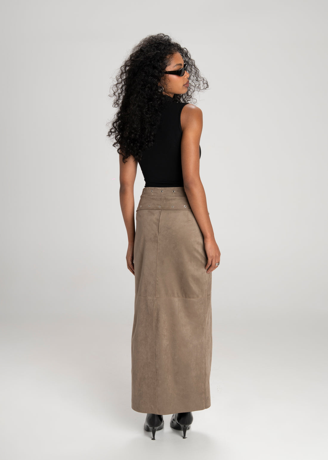 Mora Suede Maxi Mid-Waist Skirt With Belt
