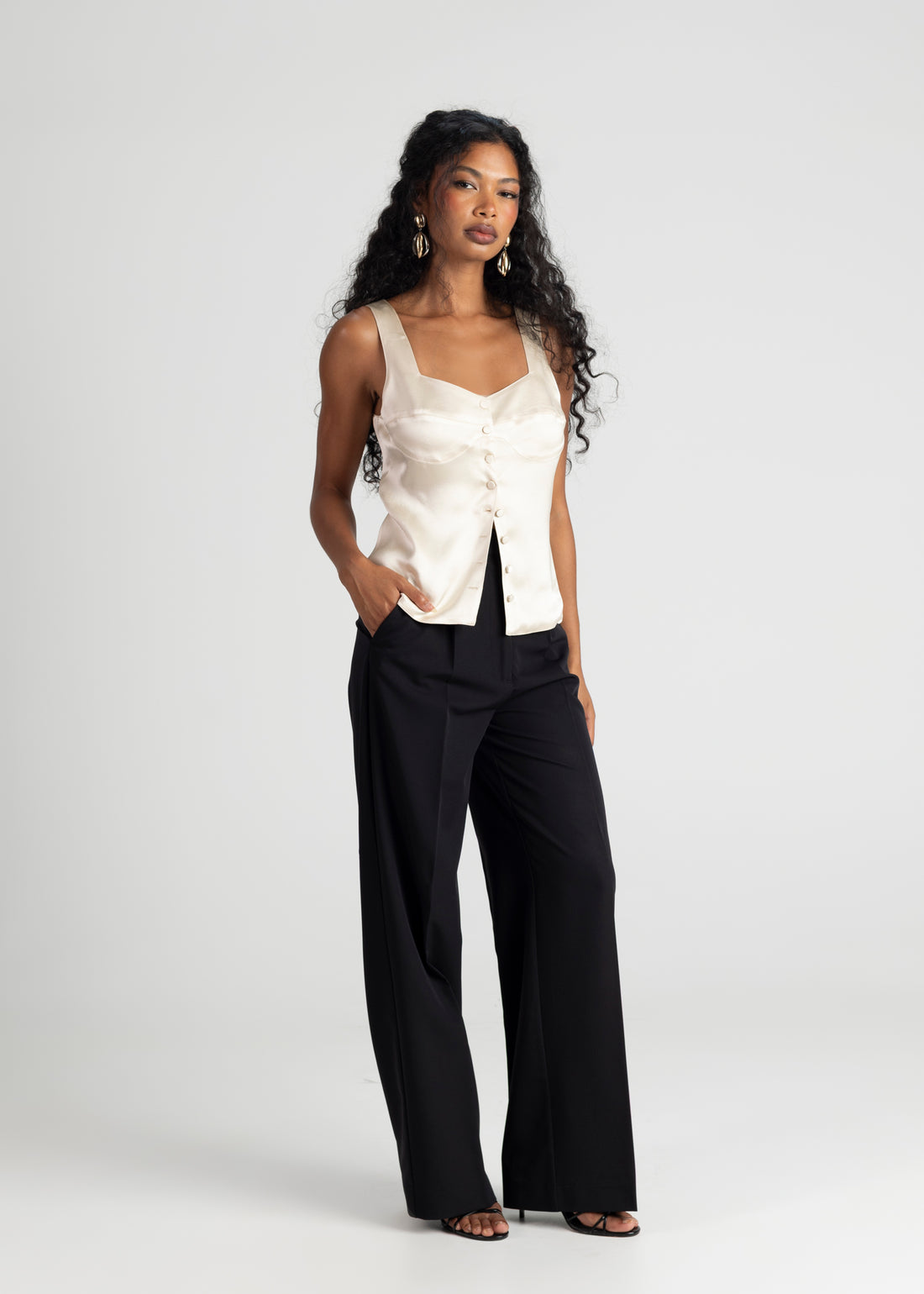Classic high-waisted tailored trousers Wide-leg cut with front pleats Waistband with belt loops Versatile and...