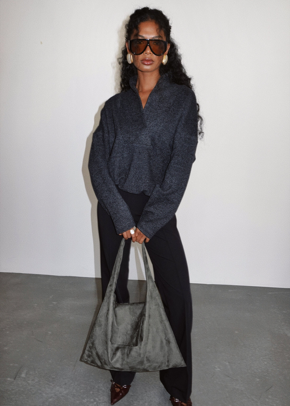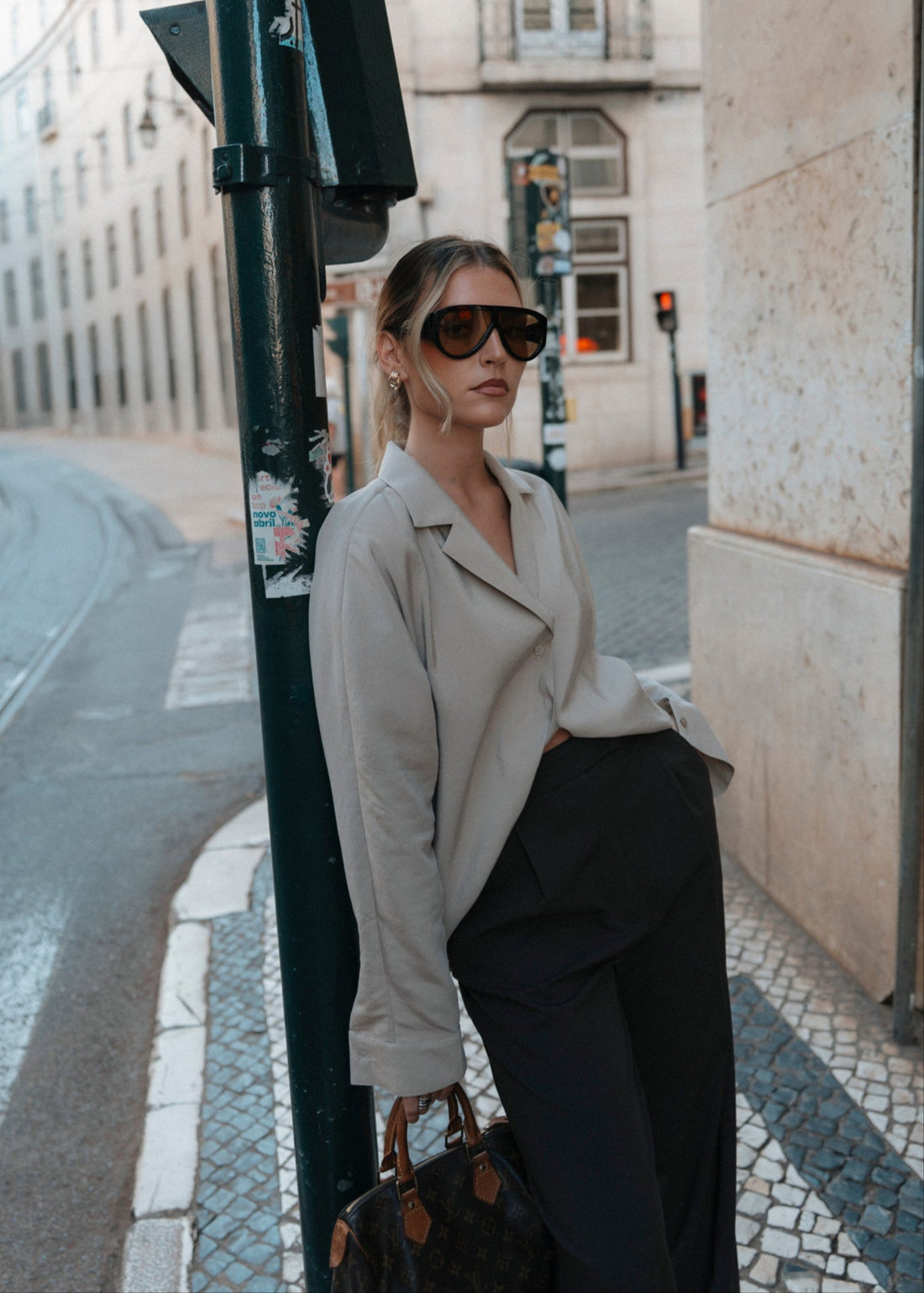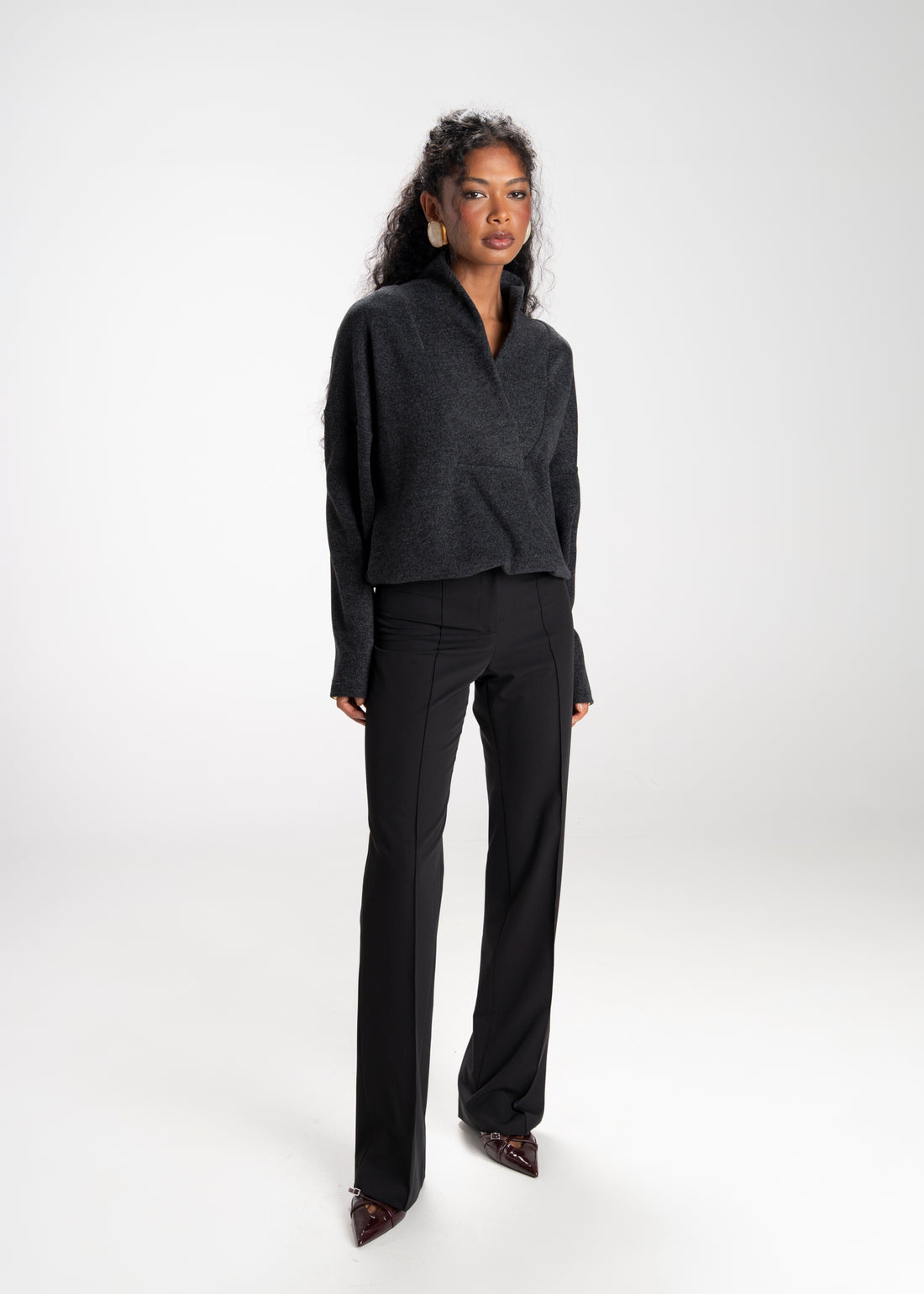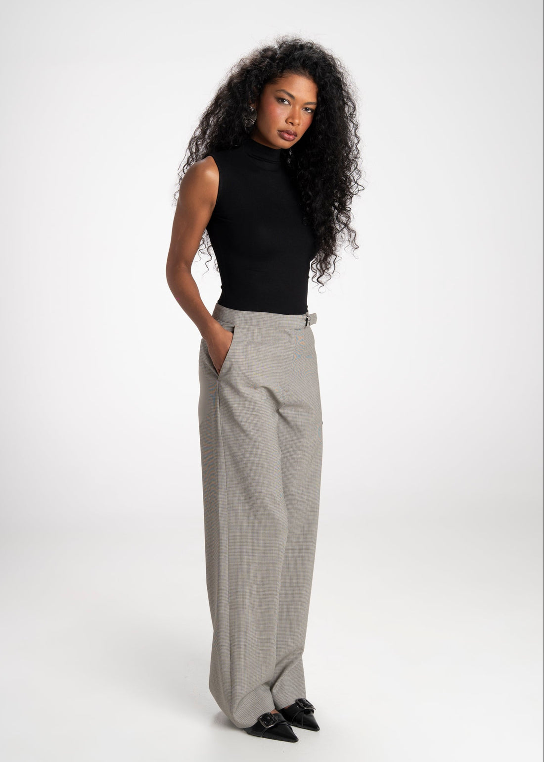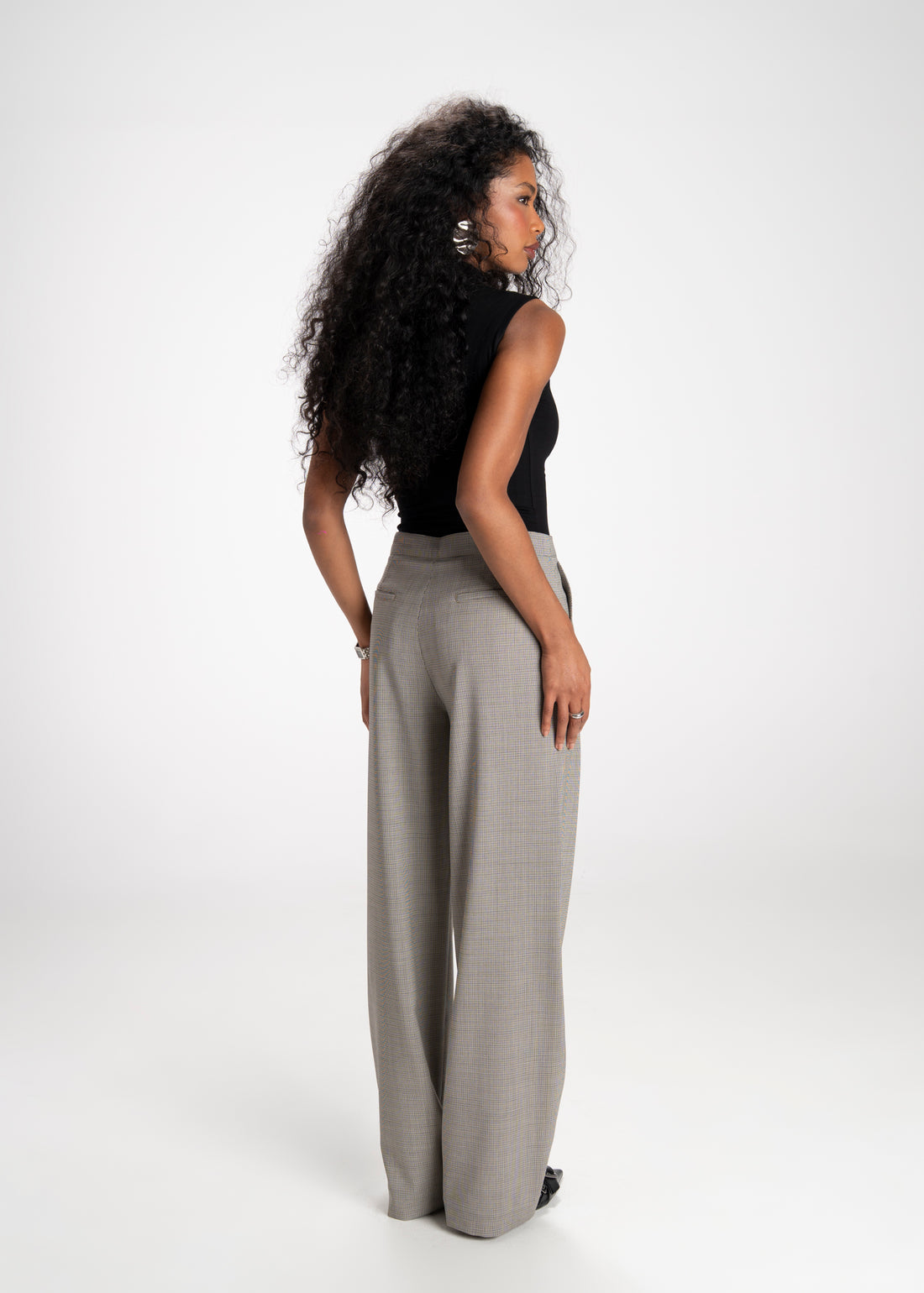 Classic high-waisted tailored trousers Wide-leg cut with front pleats Waistband with belt loops Versatile and...