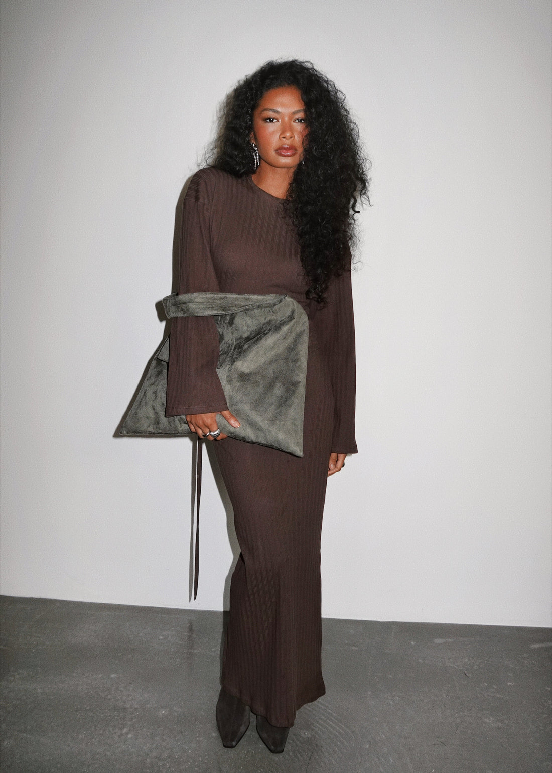 Mora Suede Maxi Mid-Waist Skirt With Belt