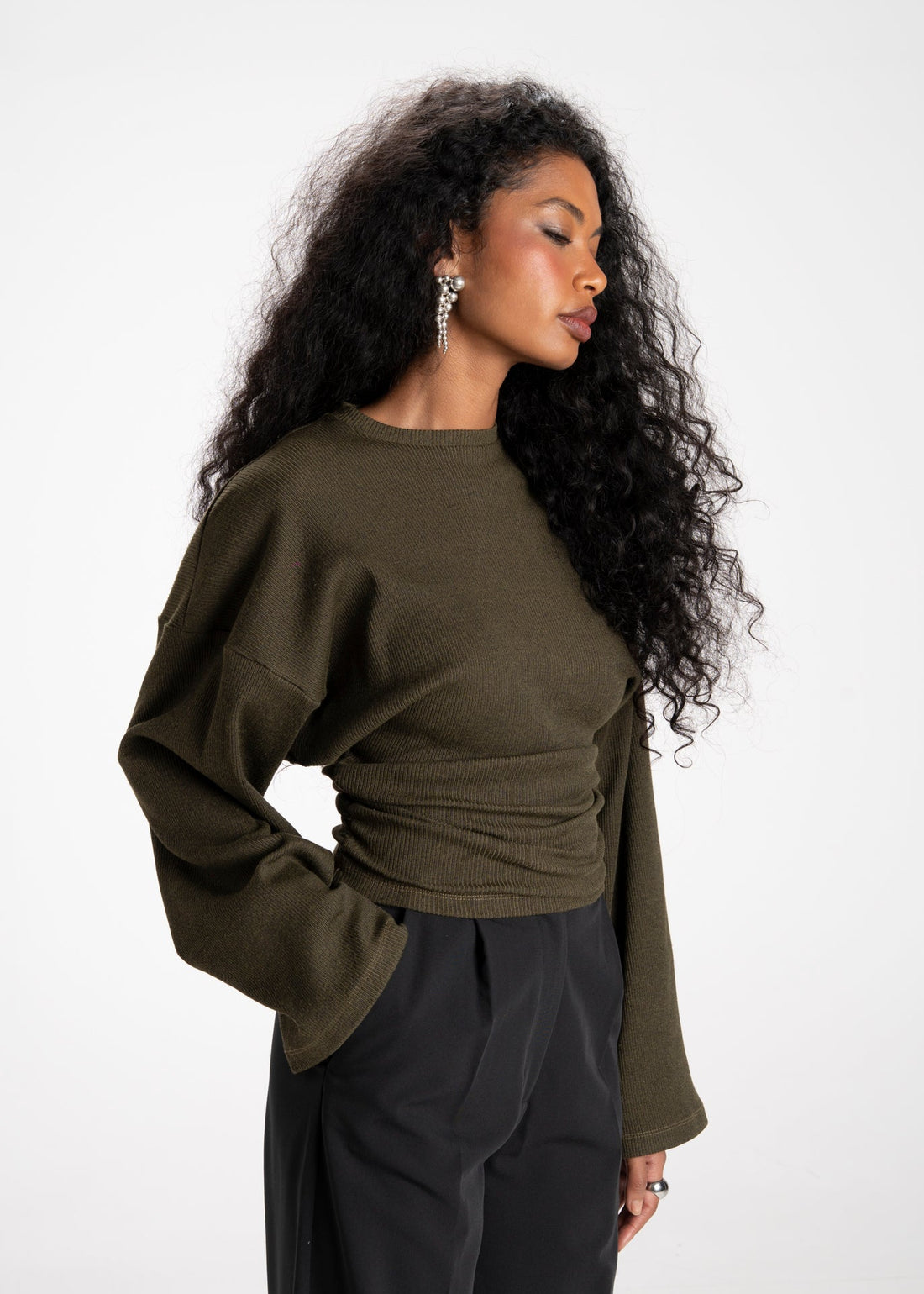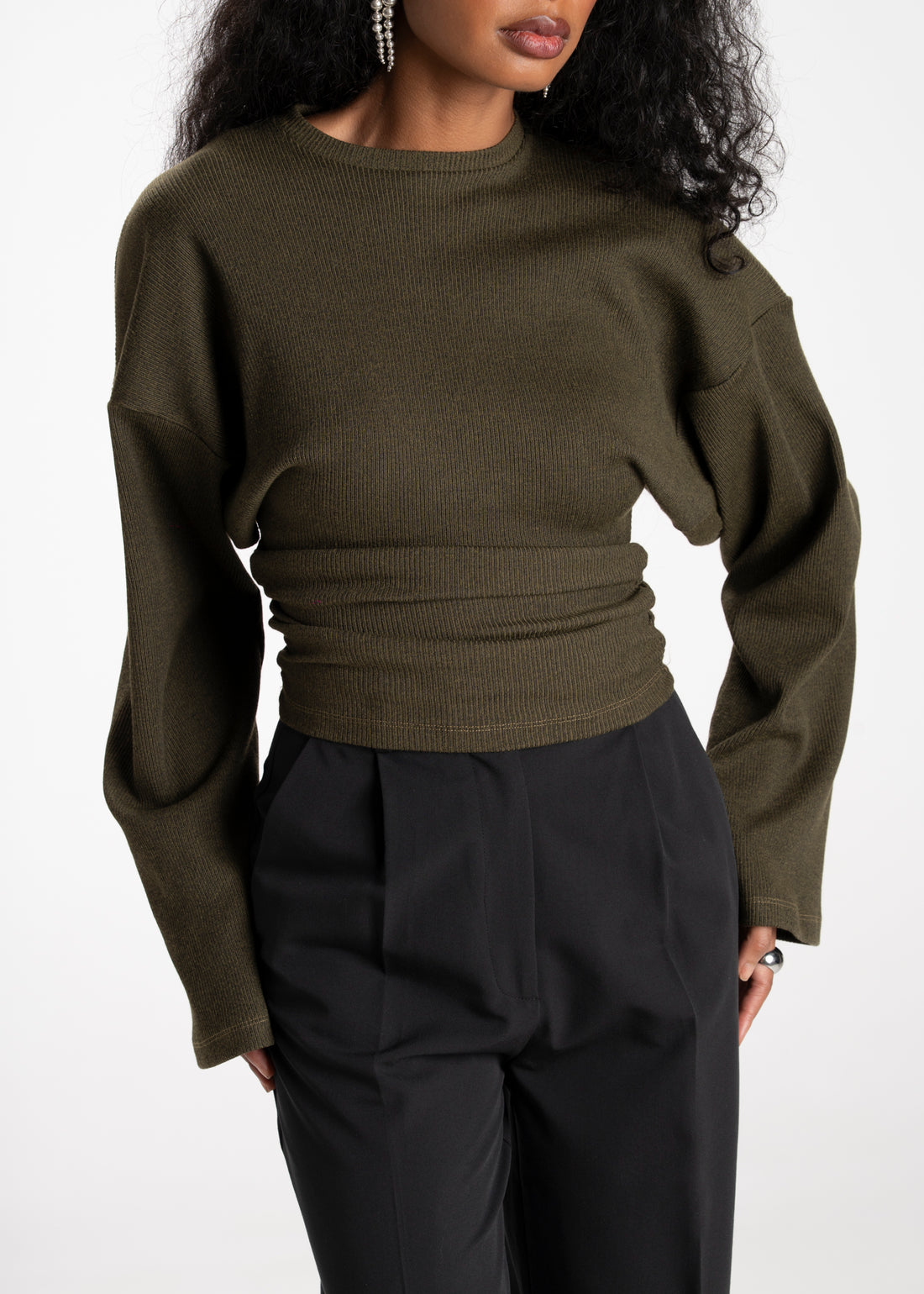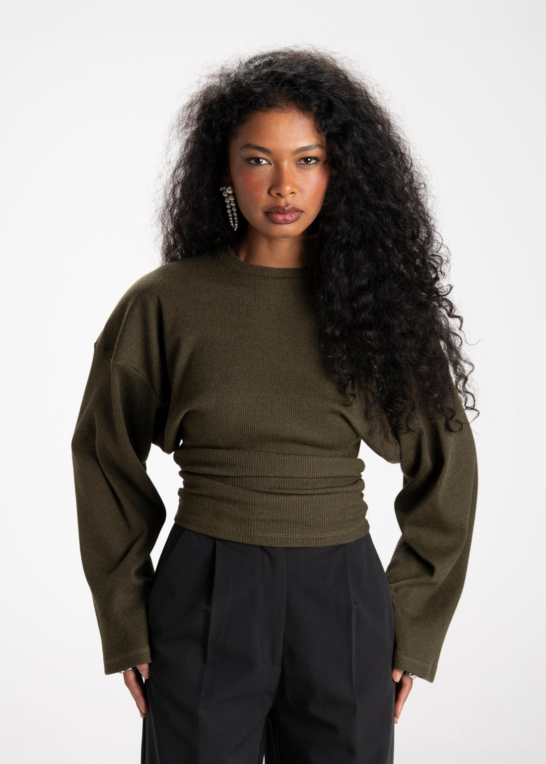 Rue Sequin Cropped Long Sleeve - Dark Sage Green