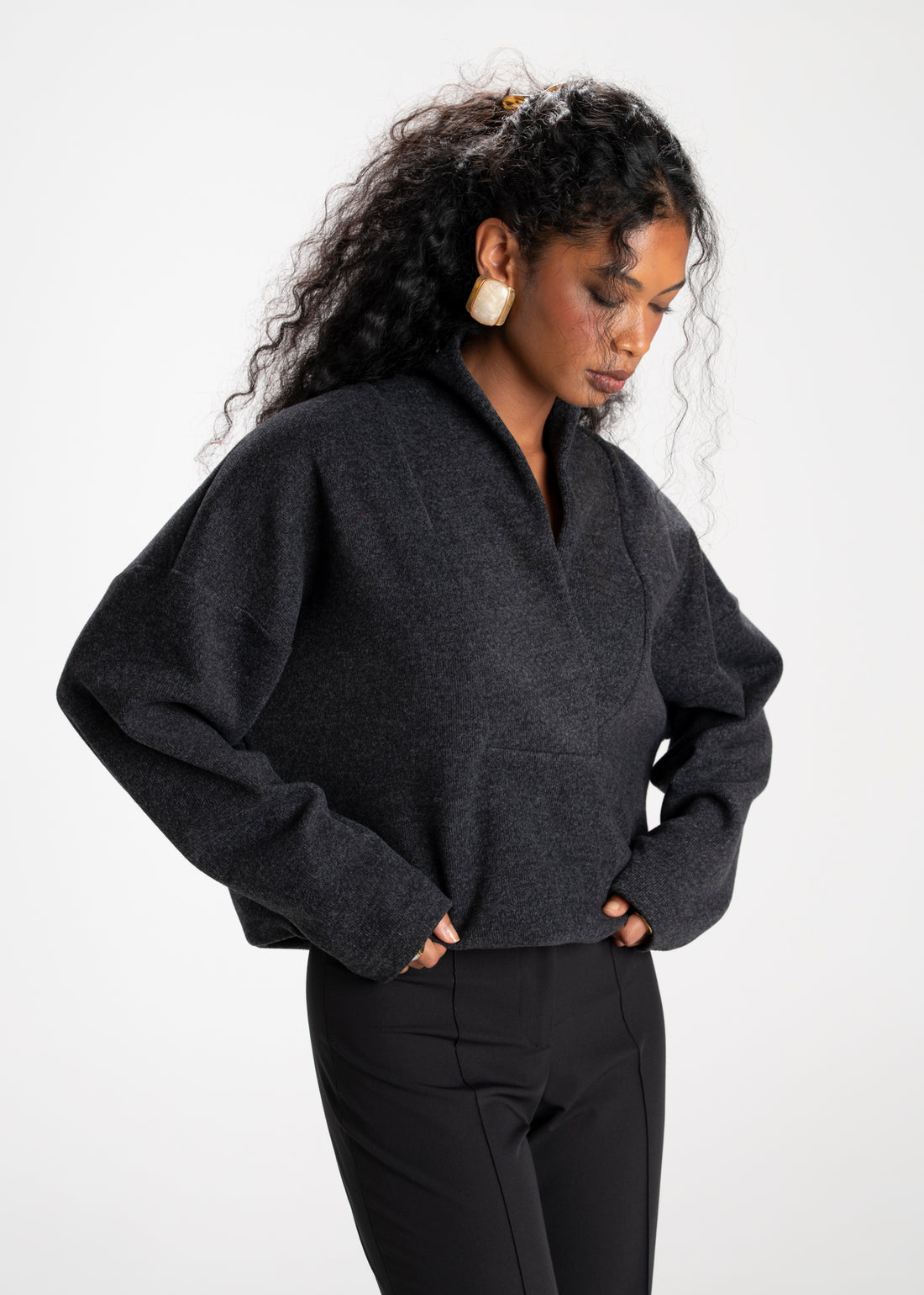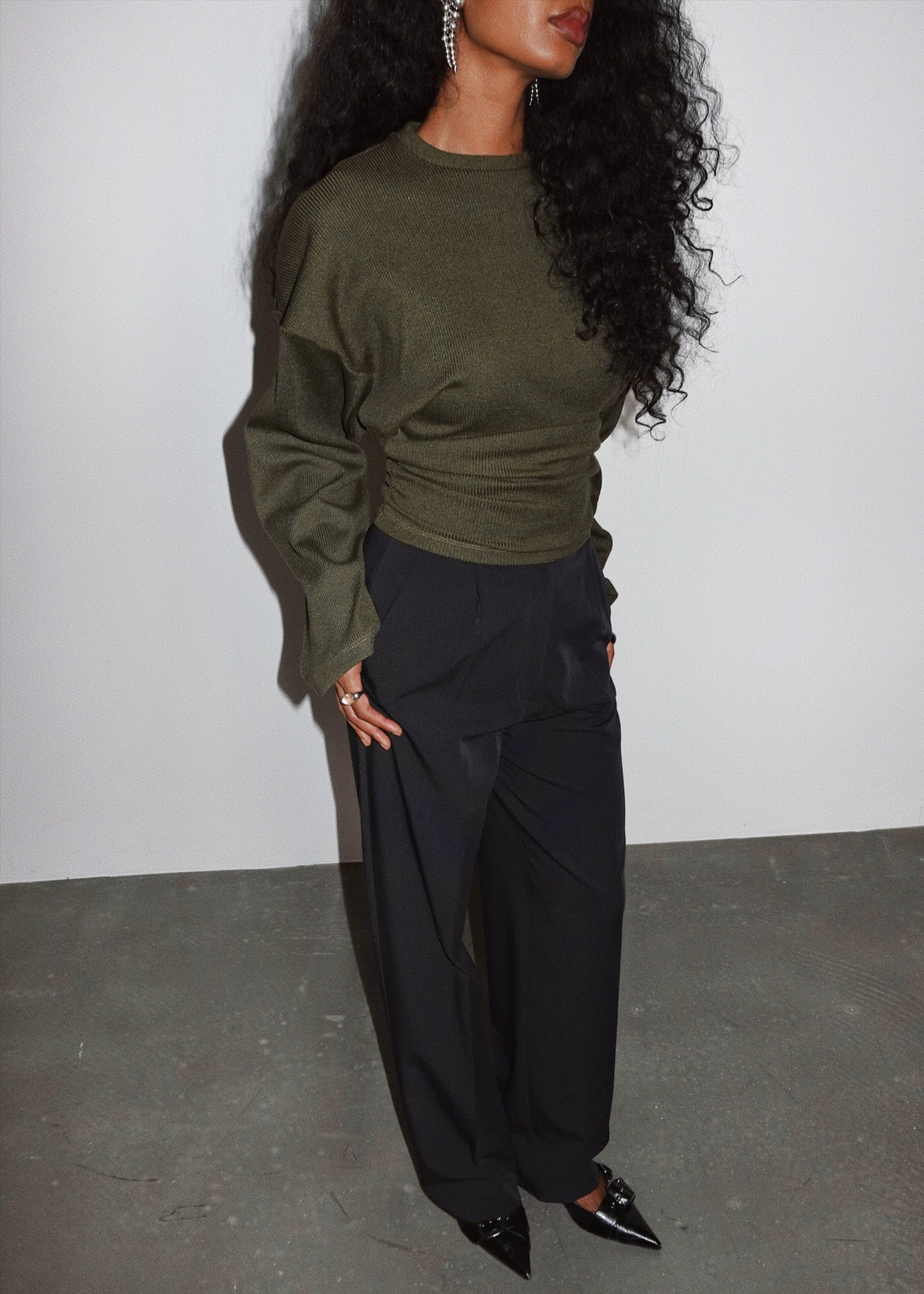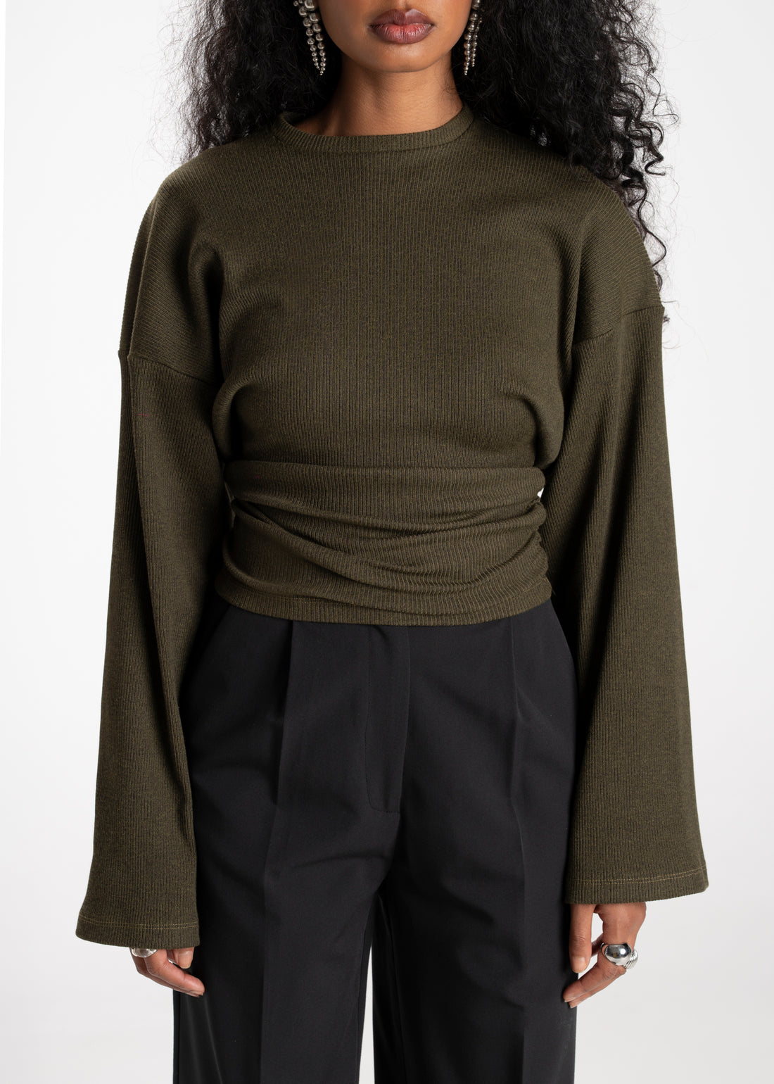 Rue Sequin Cropped Long Sleeve - Dark Sage Green