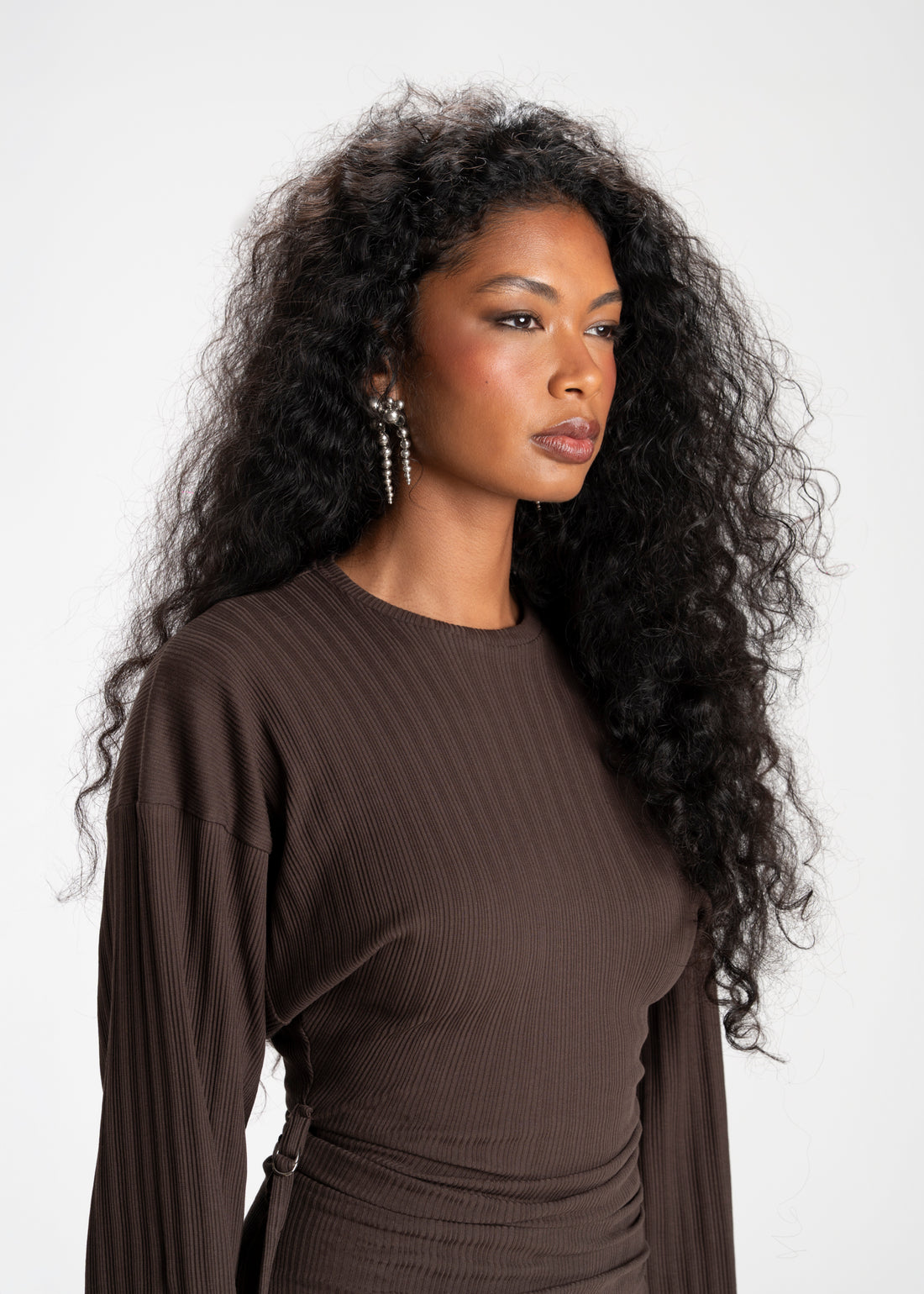 Off-the-shoulder neckline Pleated bust detail Stretchy fabric and body-hugging fit Long-sleeved top, made of stretchy...