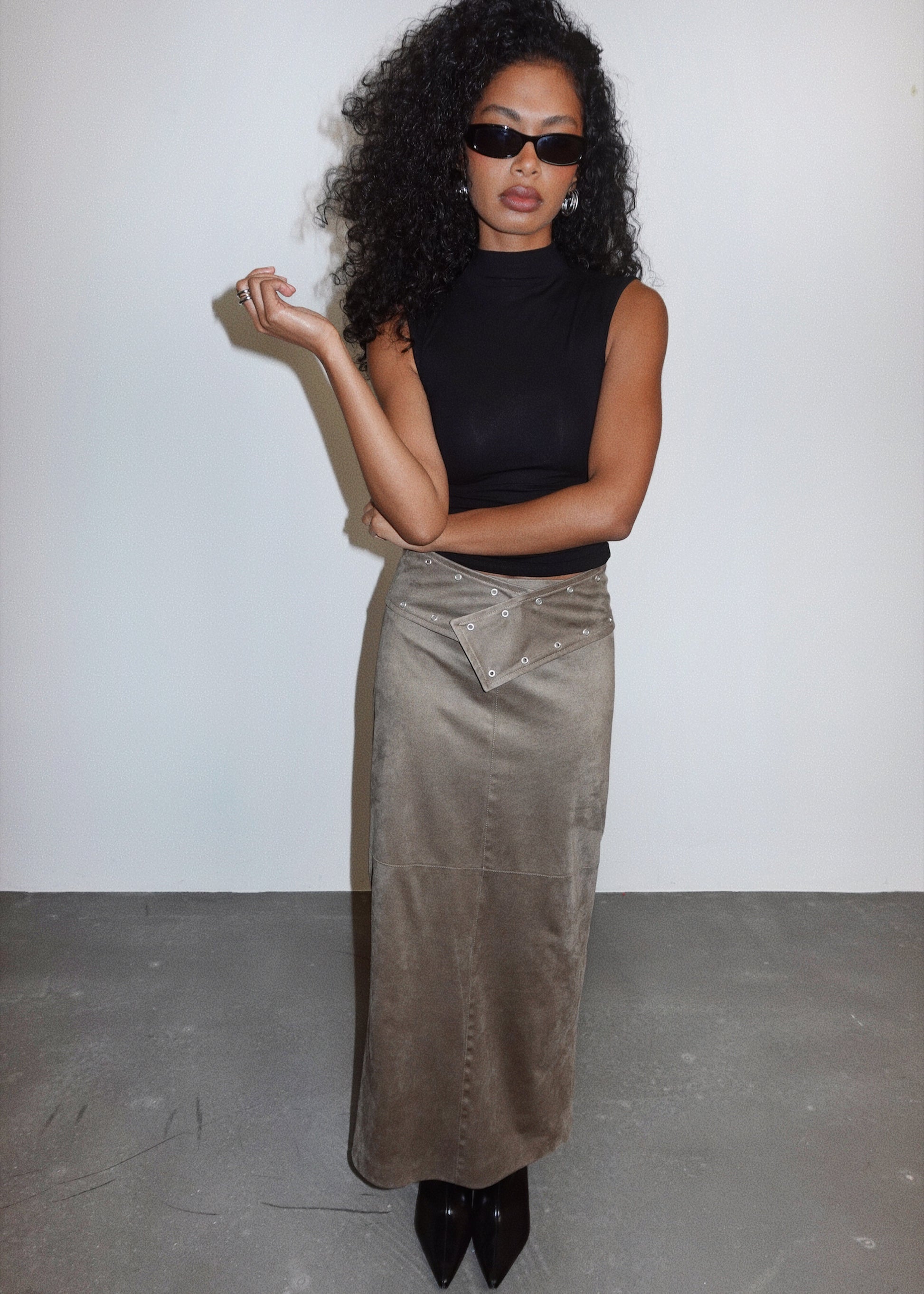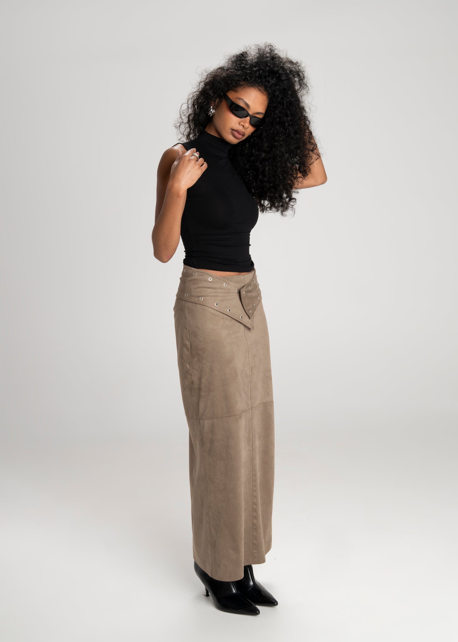 Mora Suede Maxi Mid-Waist Skirt With Belt