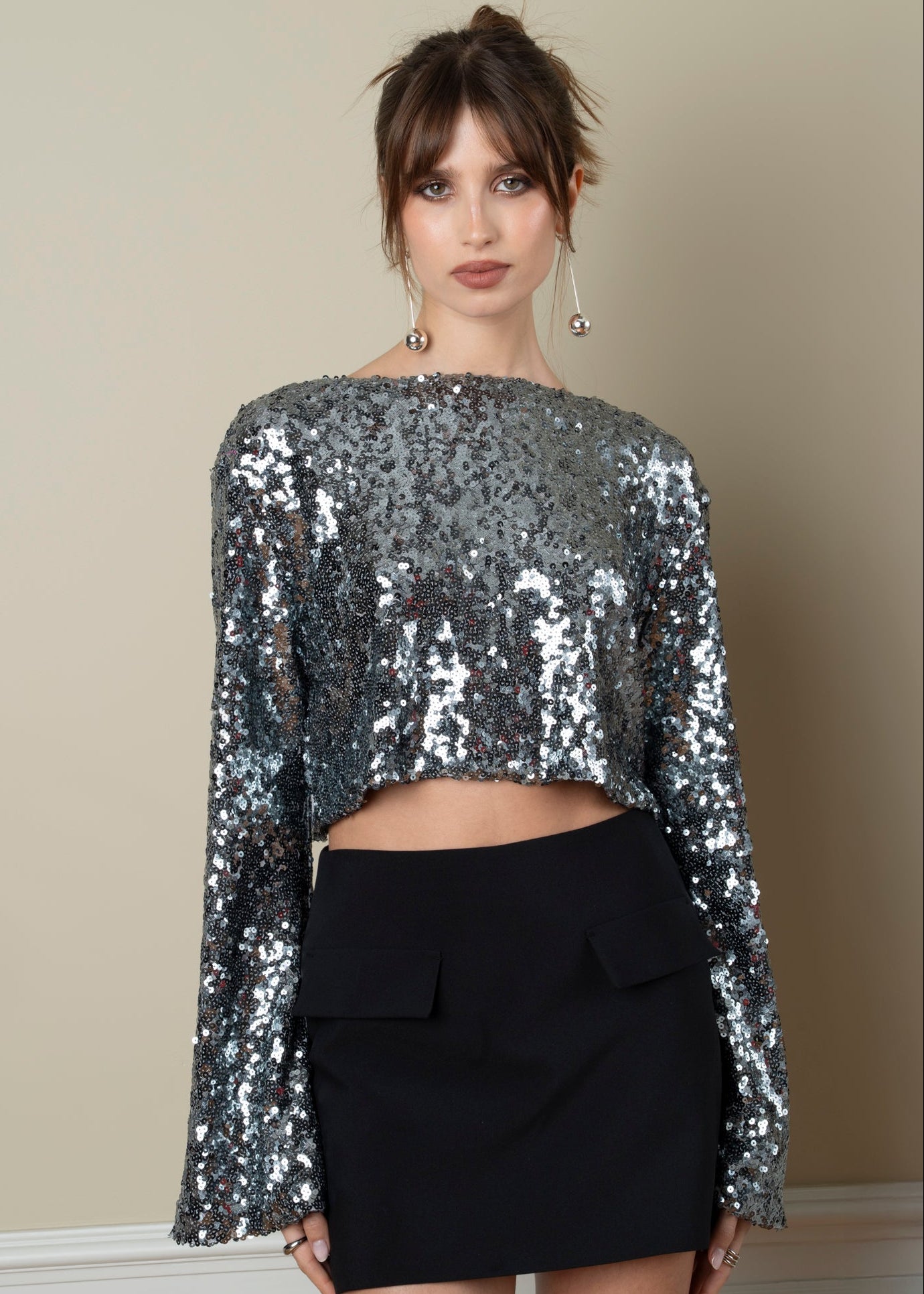 Rue Sequin Cropped Long Sleeve - Dark Sage Green
