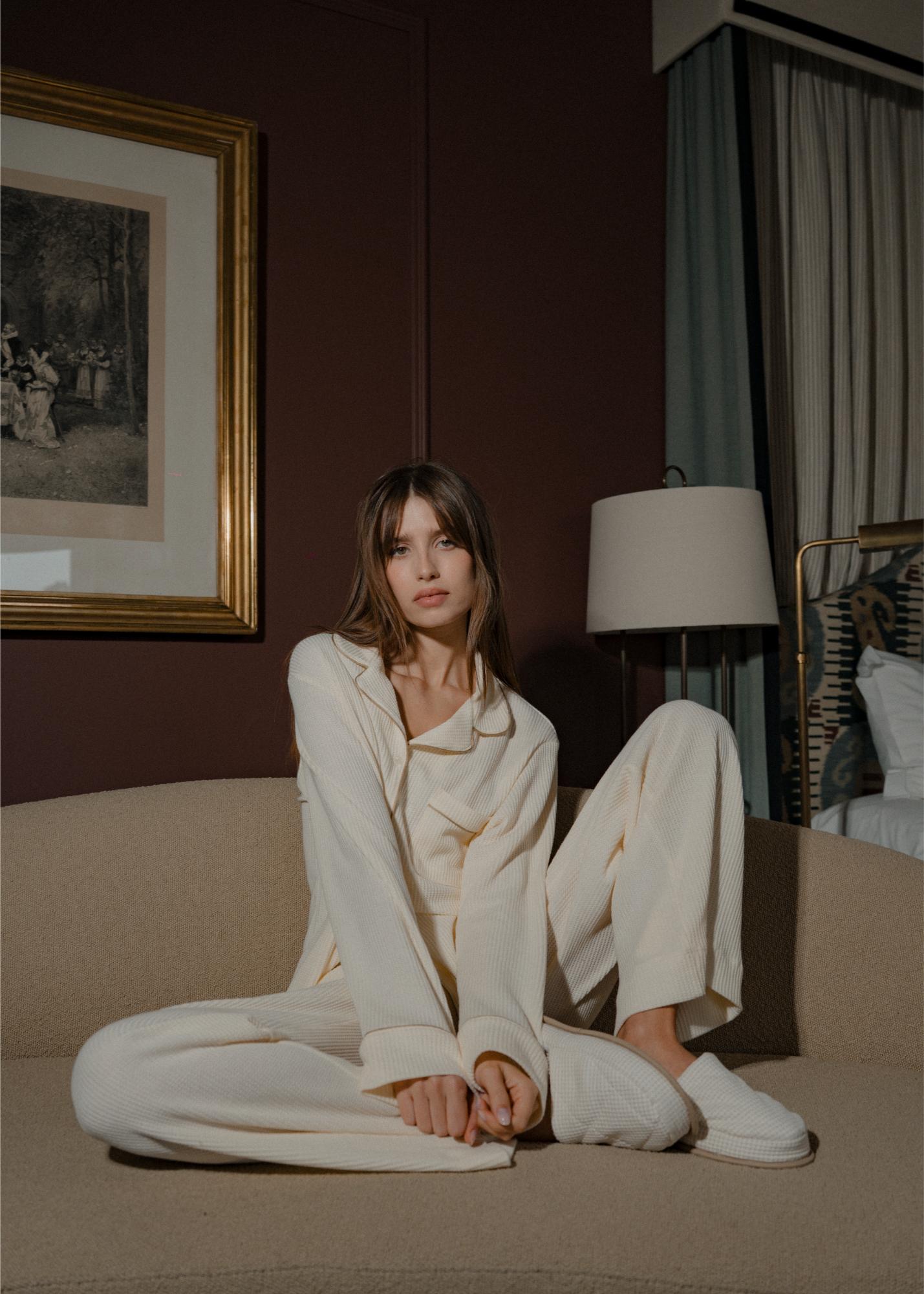 Waffle Loungewear PJ Set - Button Down & Pants