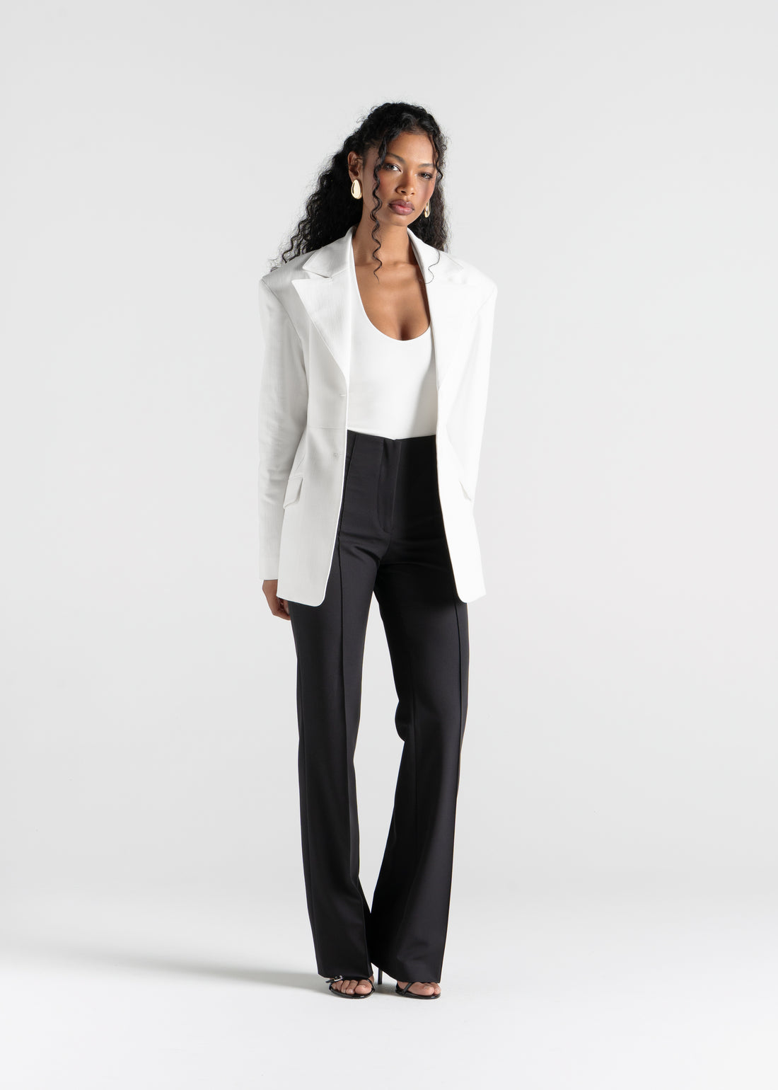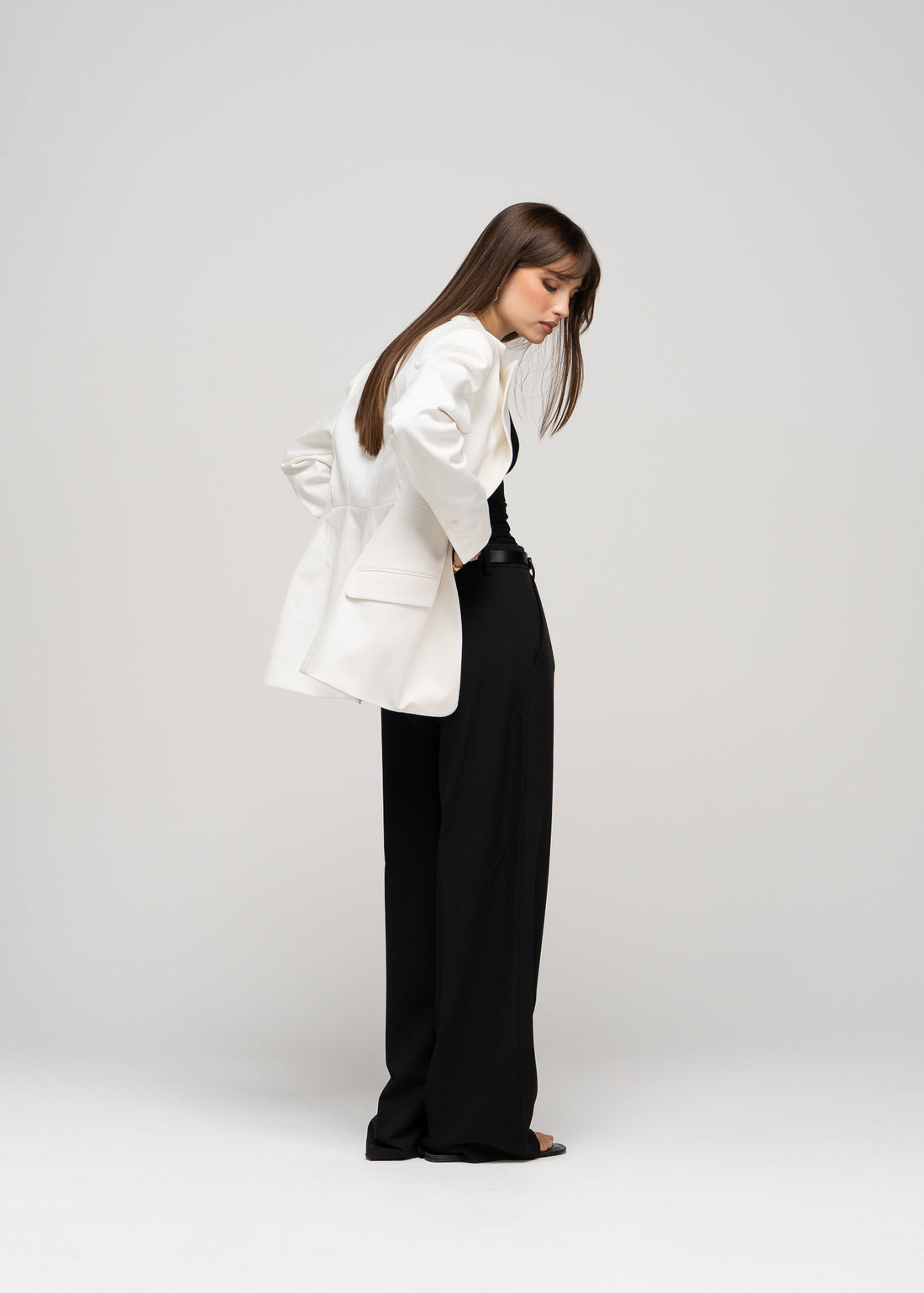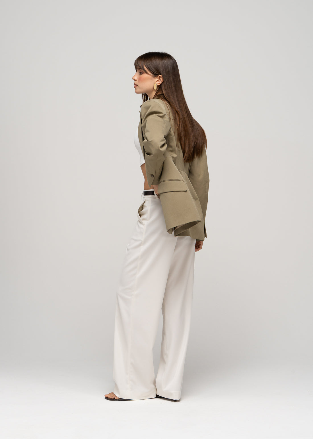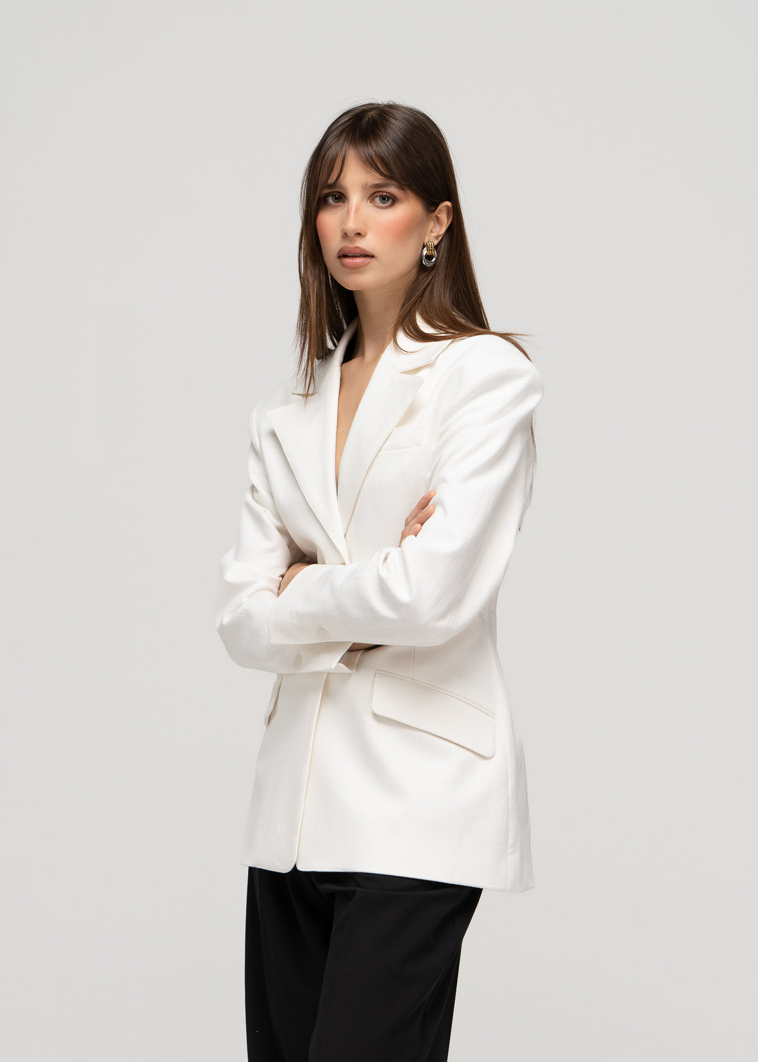 Tailored silhouette with a cinched waist and structured oversized shoulders 100% premium organic cotton Single-breasted...