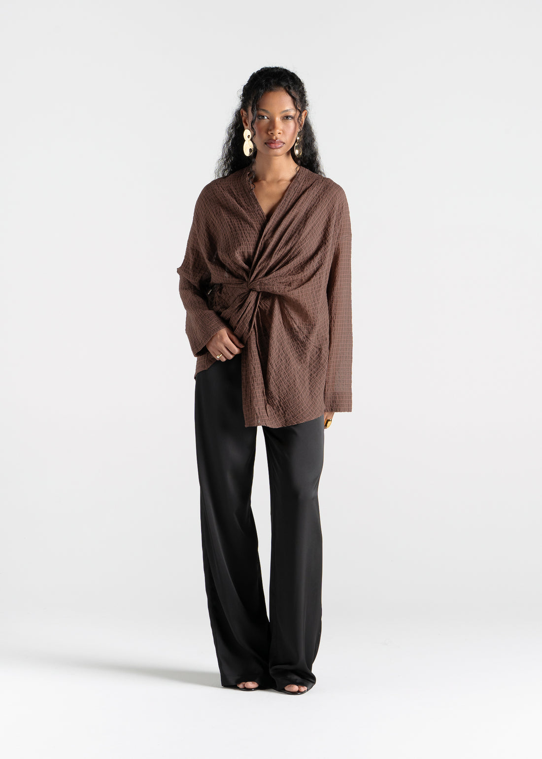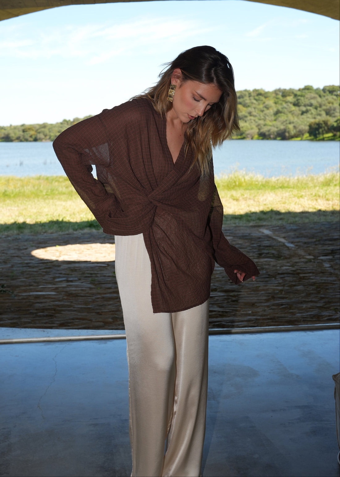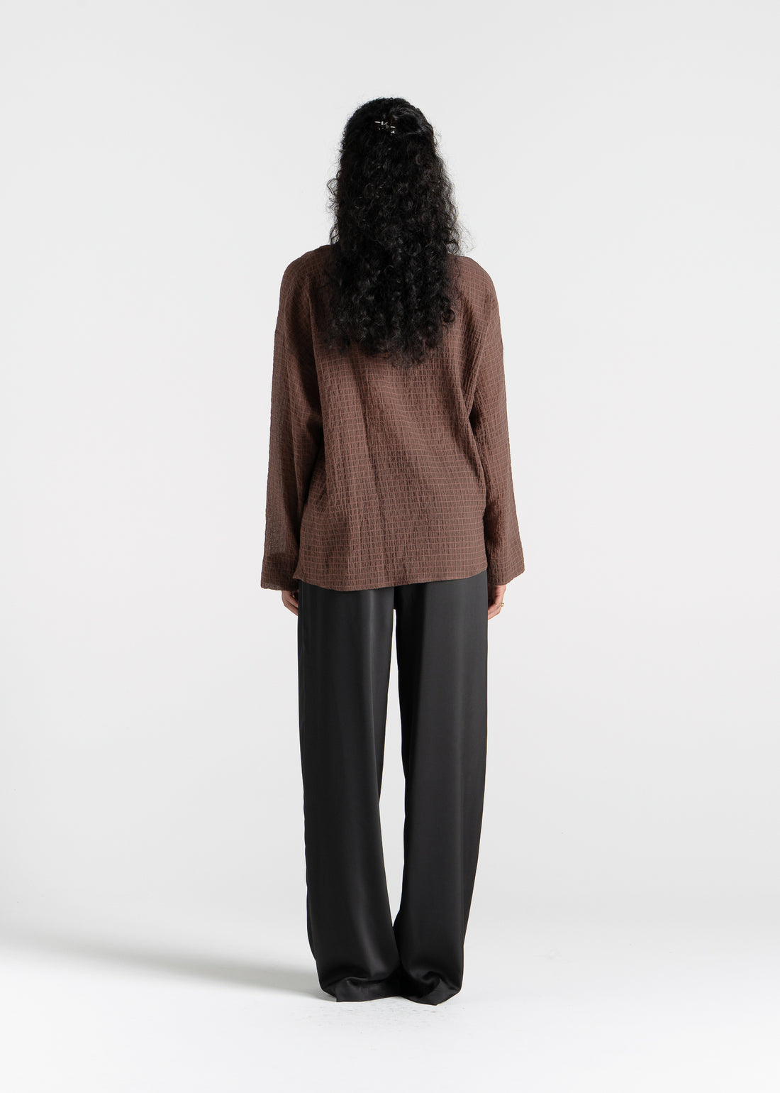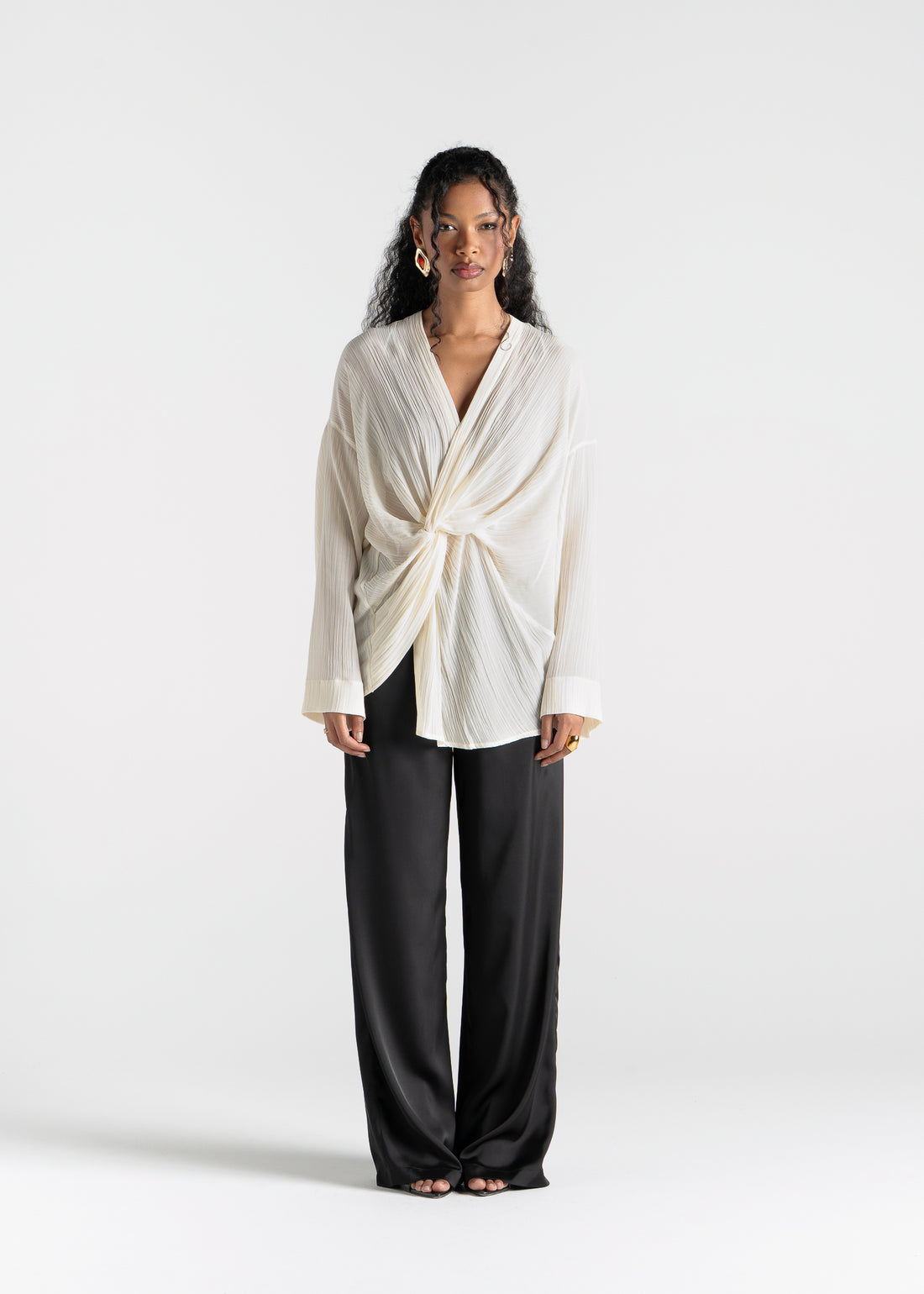 Oversized and relaxed fit Silk and Cotton blend Lightweight fabric with subtle pleats Slightly see-through...