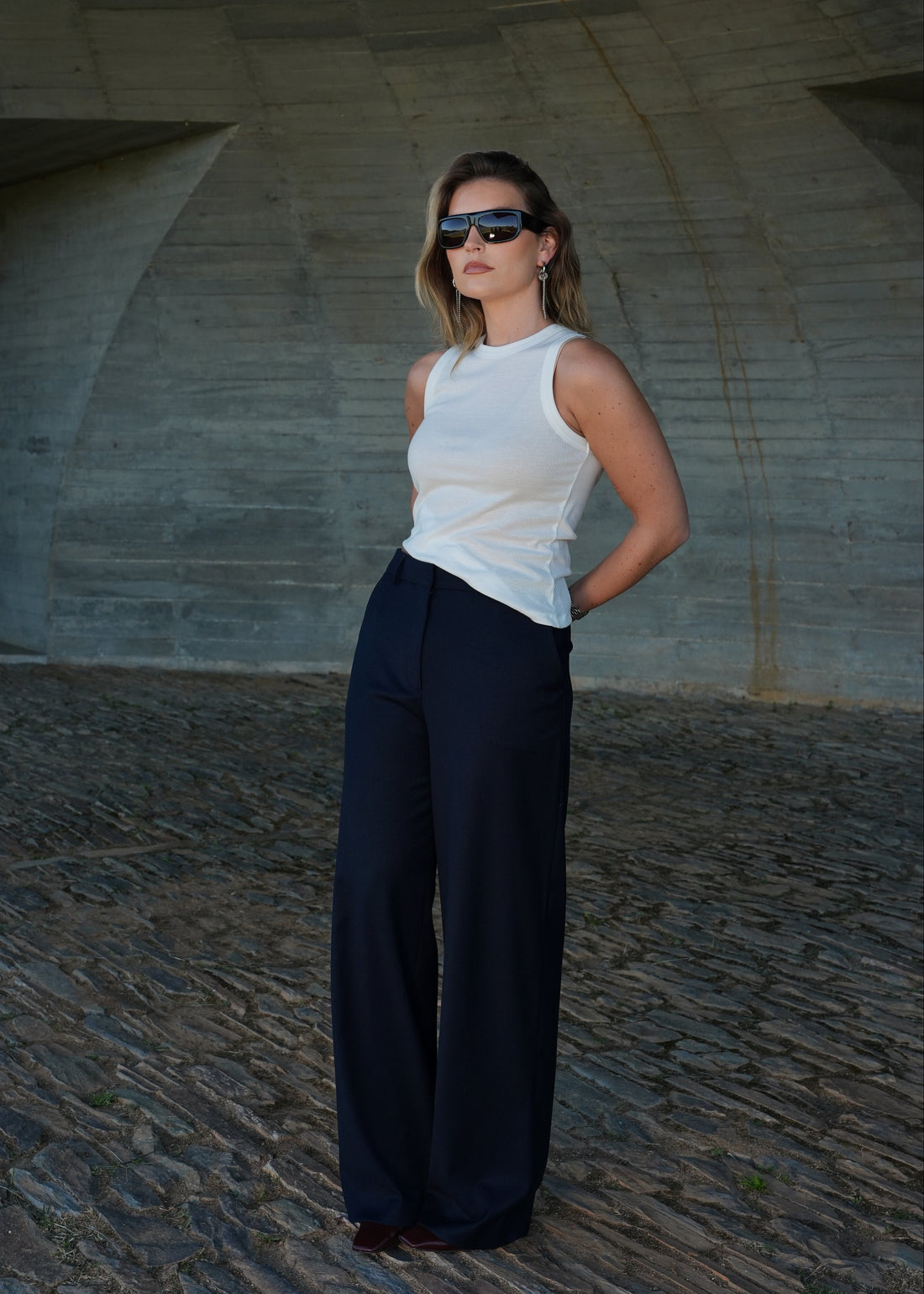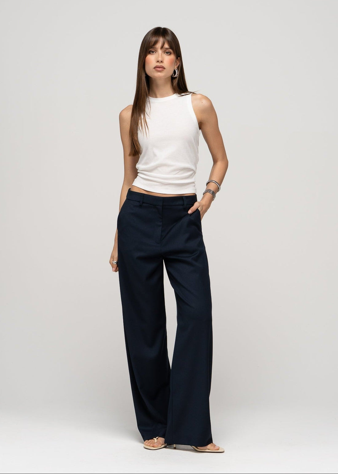 Jadis Mid-Waist Tailored Trousers - Navy Blue