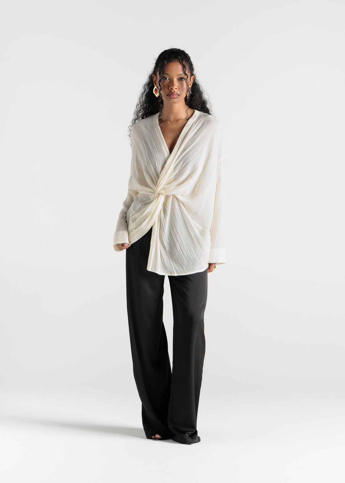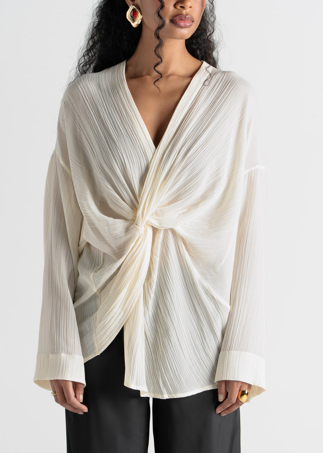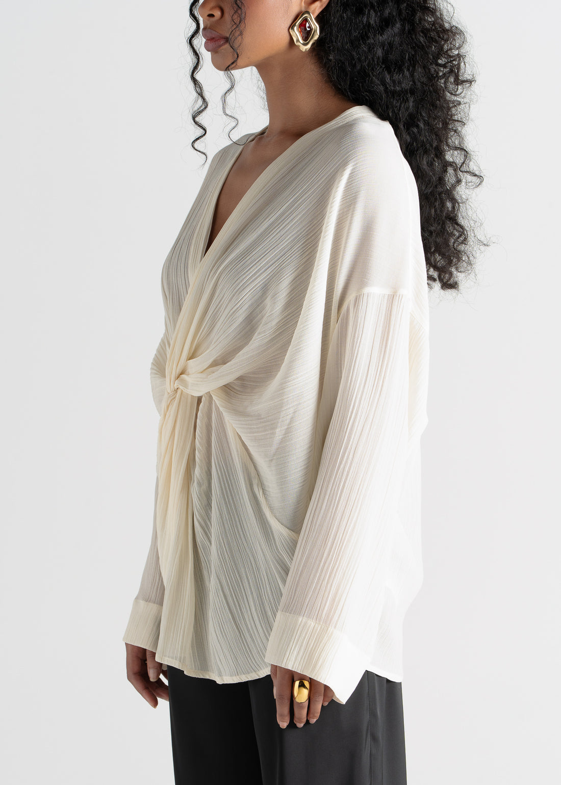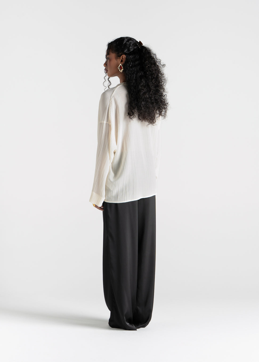 Oversized and relaxed fit Lightweight fabric with subtle pleats Slightly see-through This blouse features a...