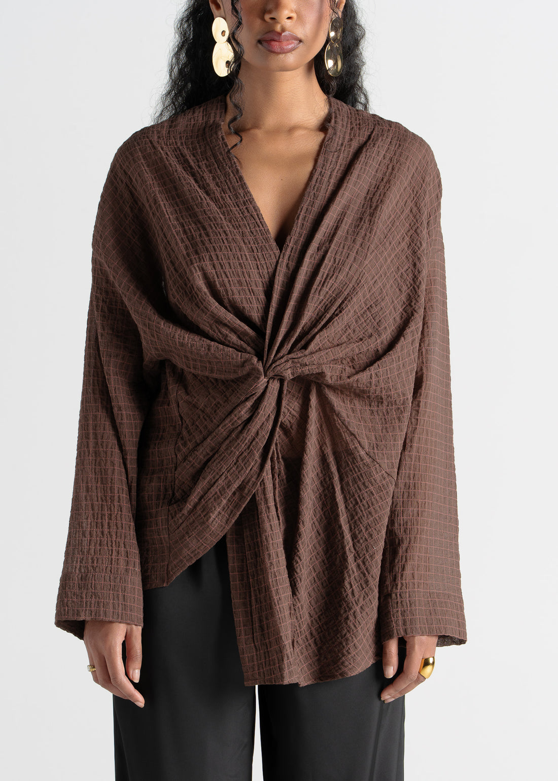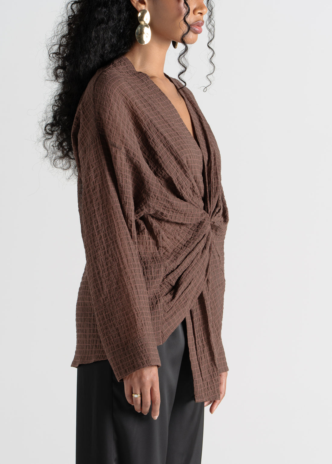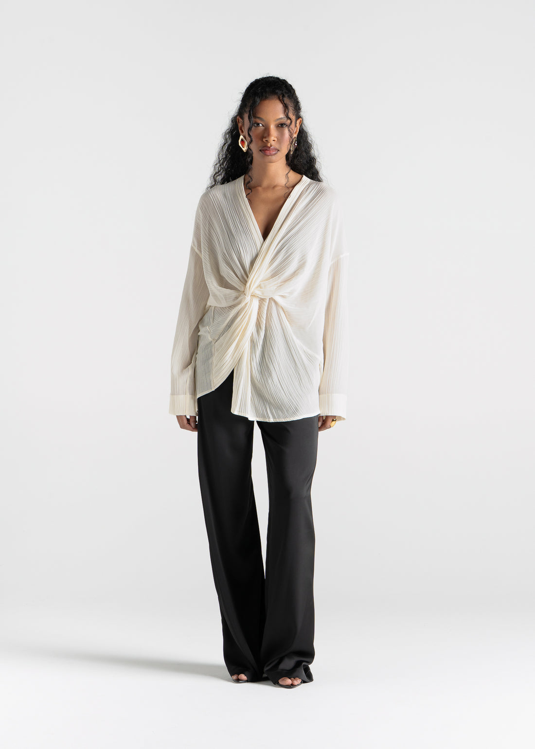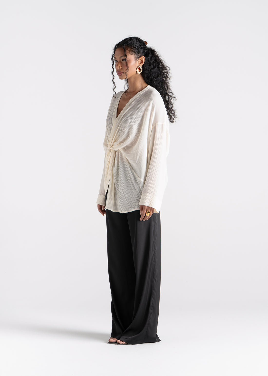 Oversized and relaxed fit Lightweight fabric with subtle pleats Slightly see-through This blouse features a...