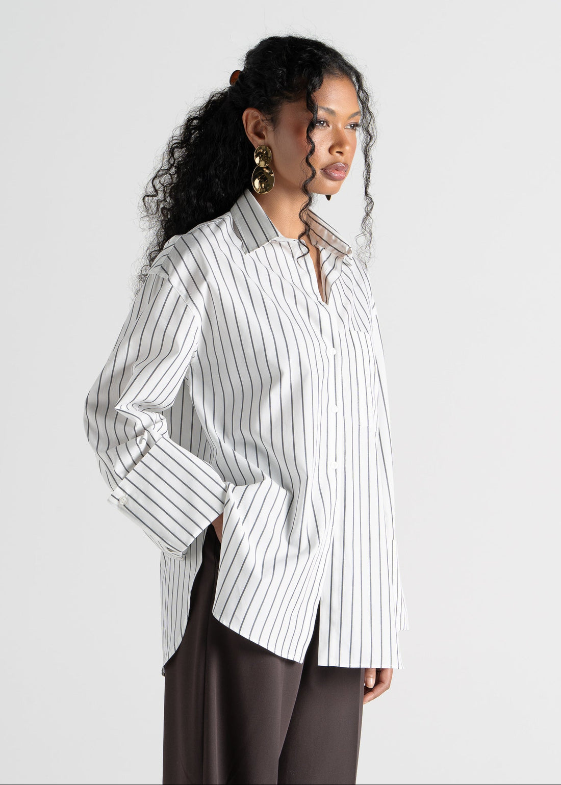 Statement wide cuffs Oversized fit with extended back hem Soft vertical stripe pattern 100% premium...