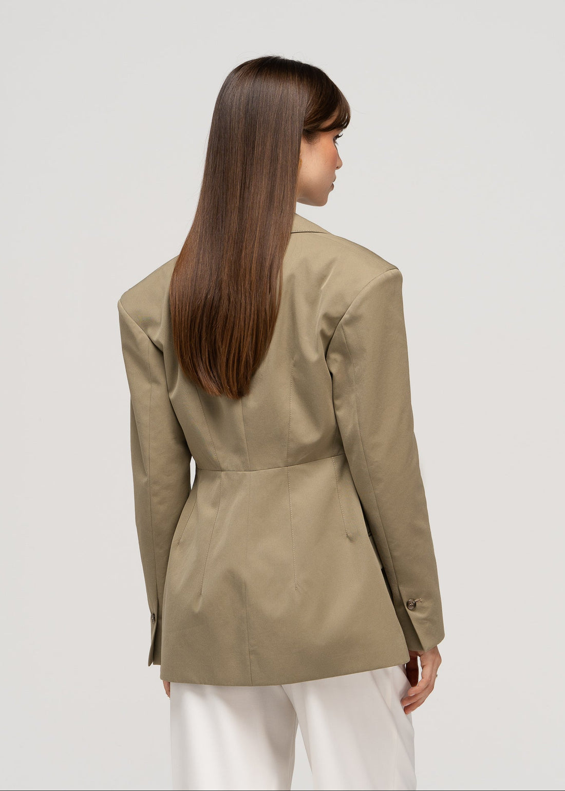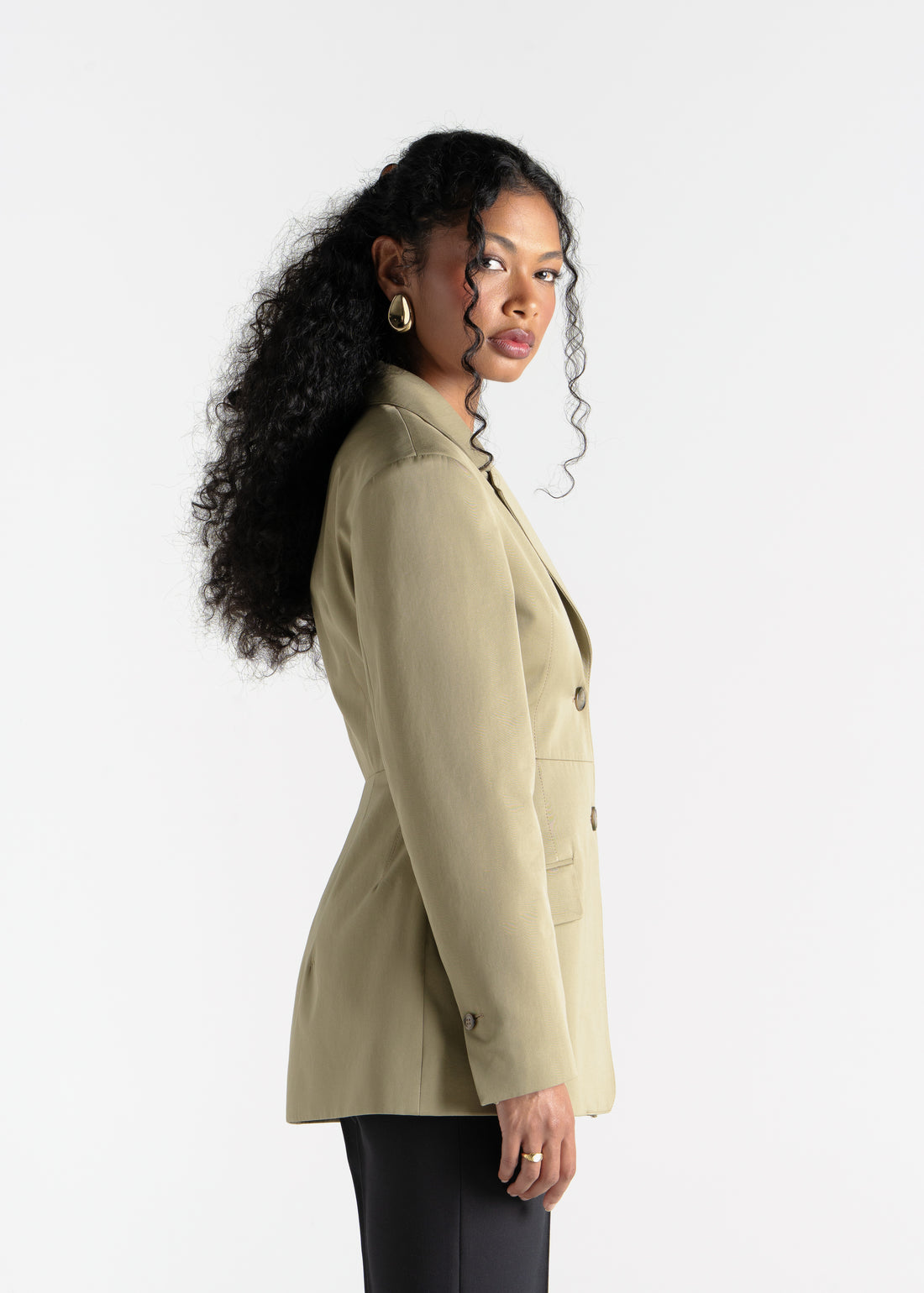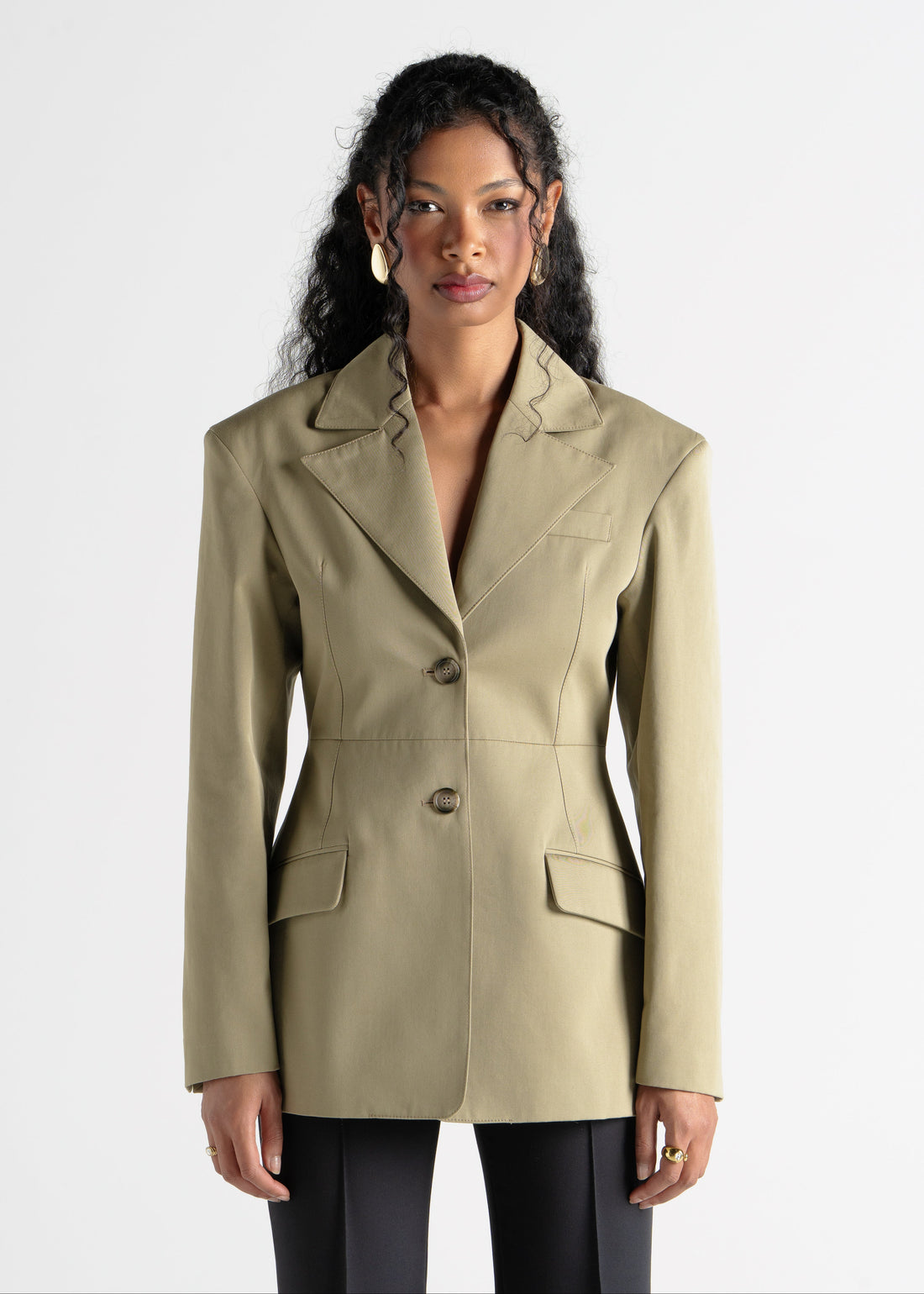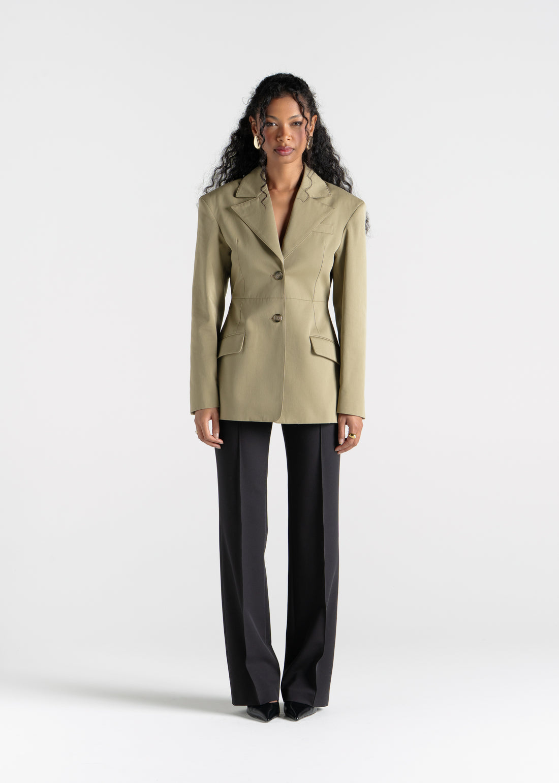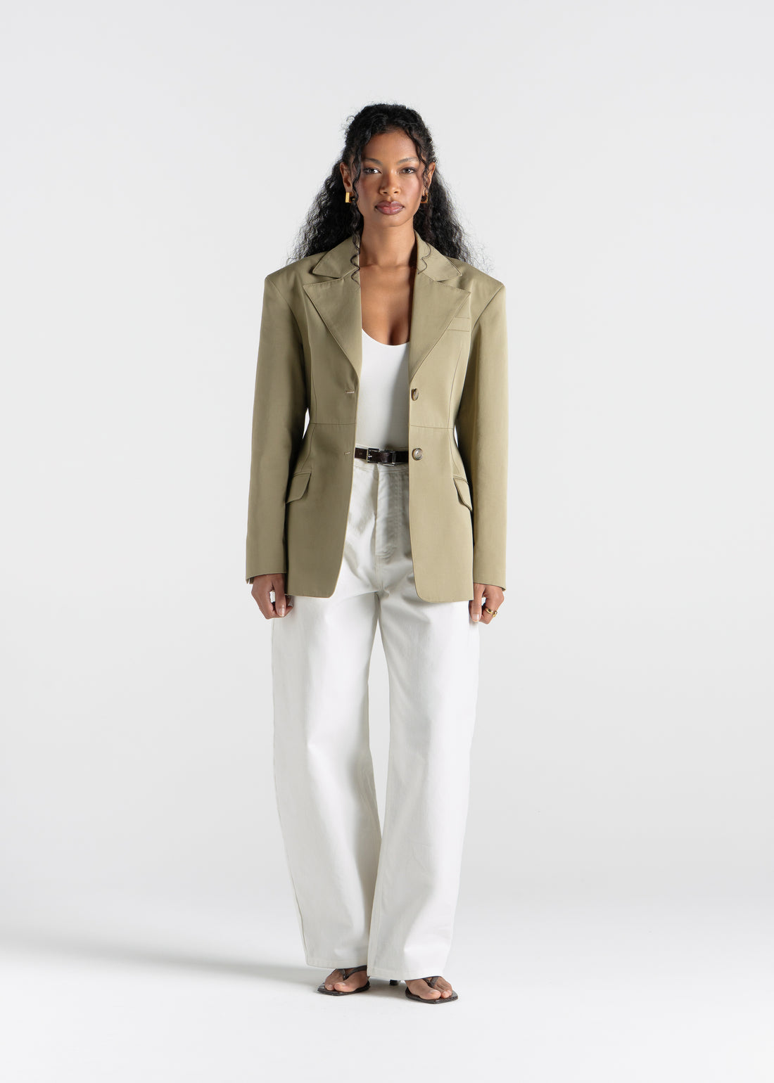 Ella Structured Waist-Cinched Blazer - Olive Green