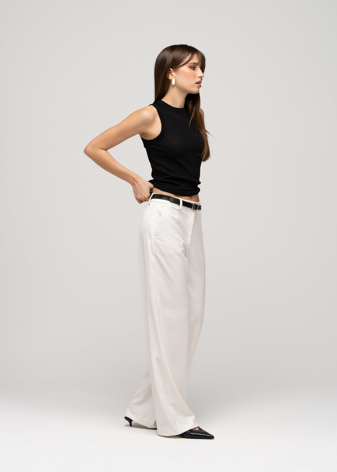 Tailored mid-waist fit Relaxed wide-leg silhouette Invisible pocket lining to avoid show-through Functional side pockets...