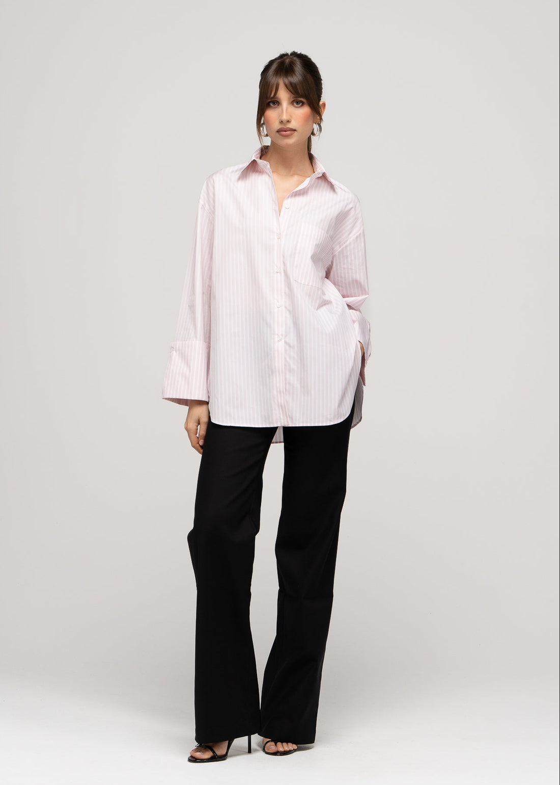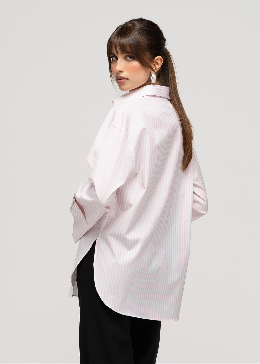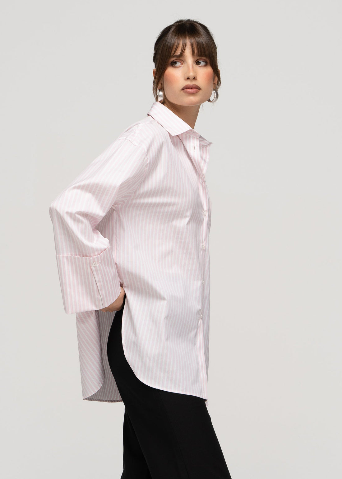 Gia Wide Cuff Cotton Shirt - Pink & White
