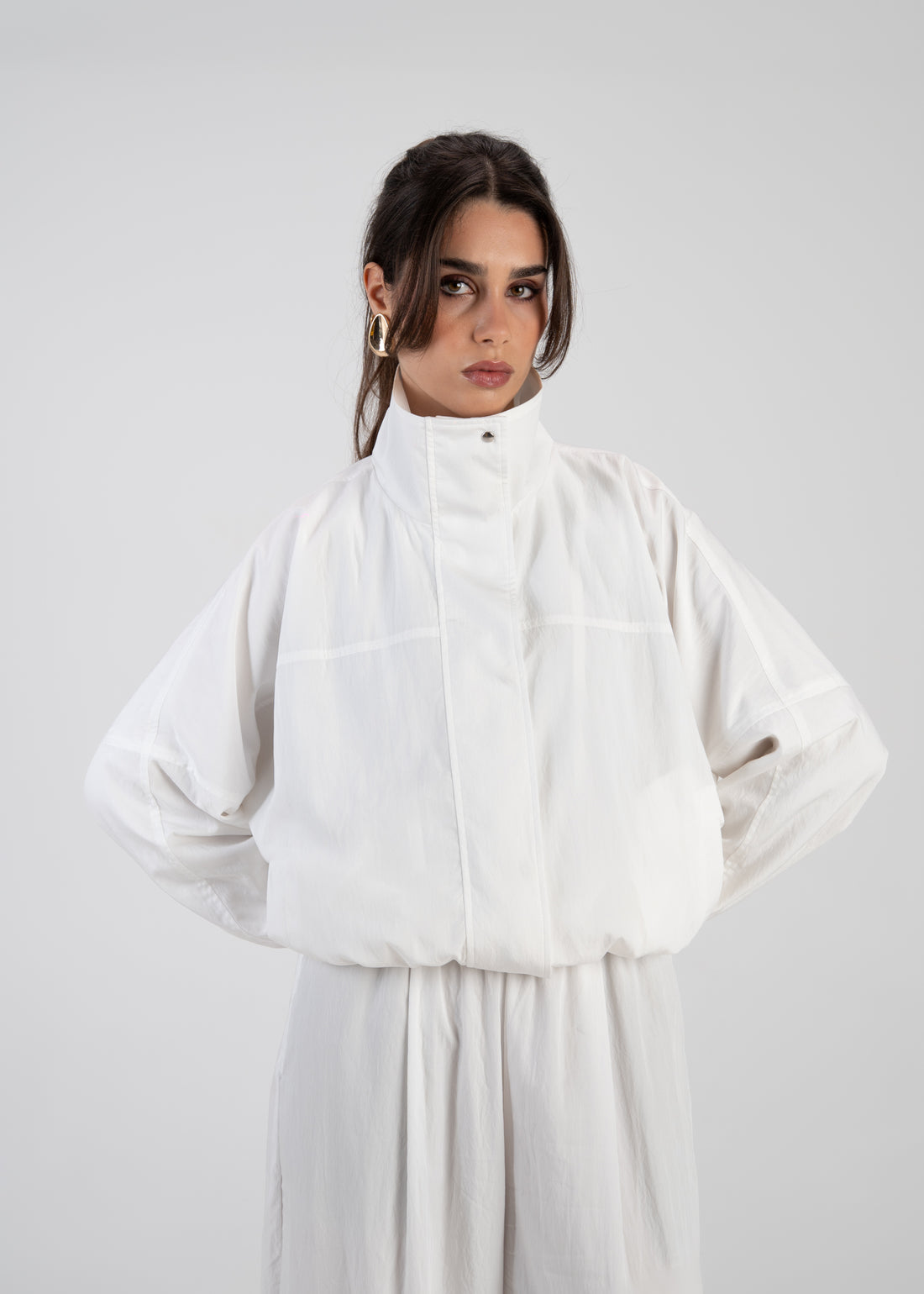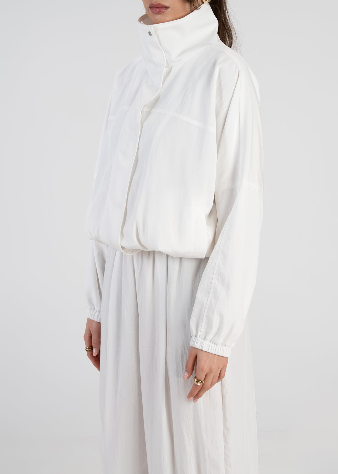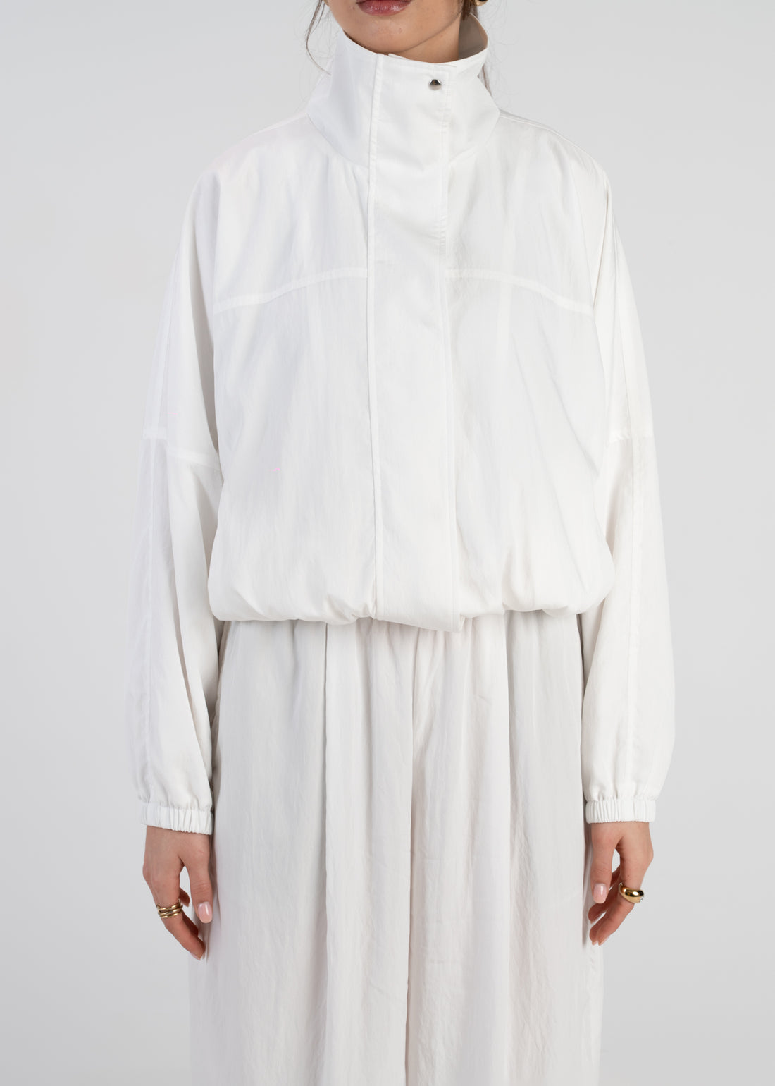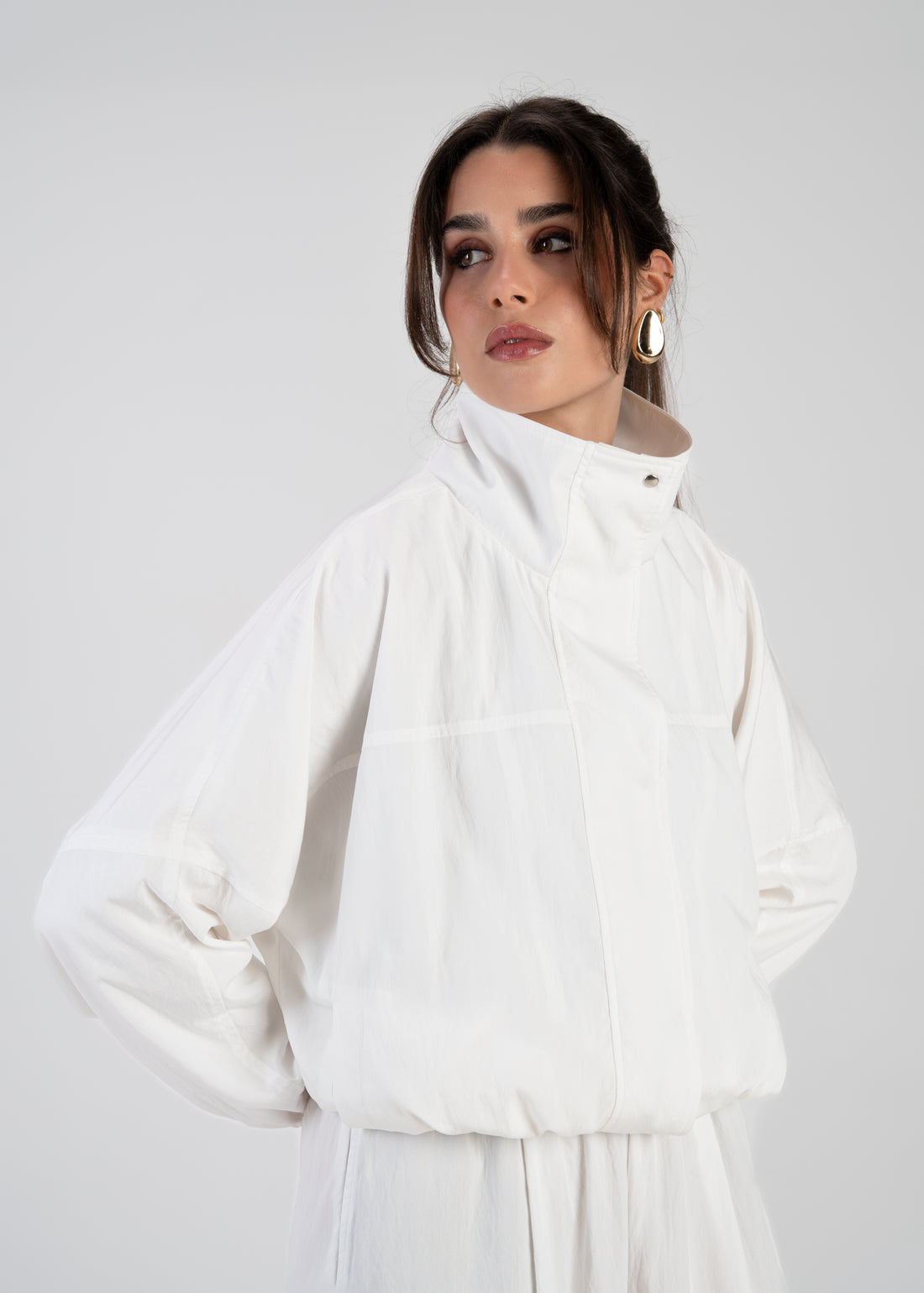 Carter High Neck Windbreaker Jacket – Ivory