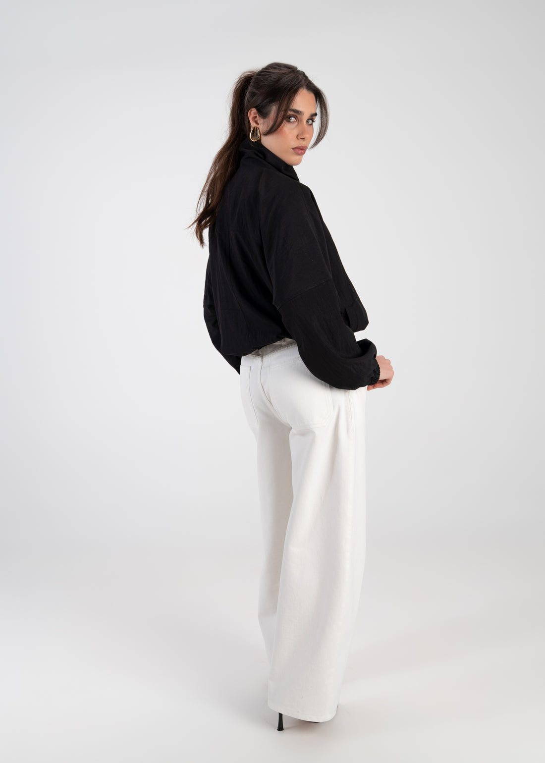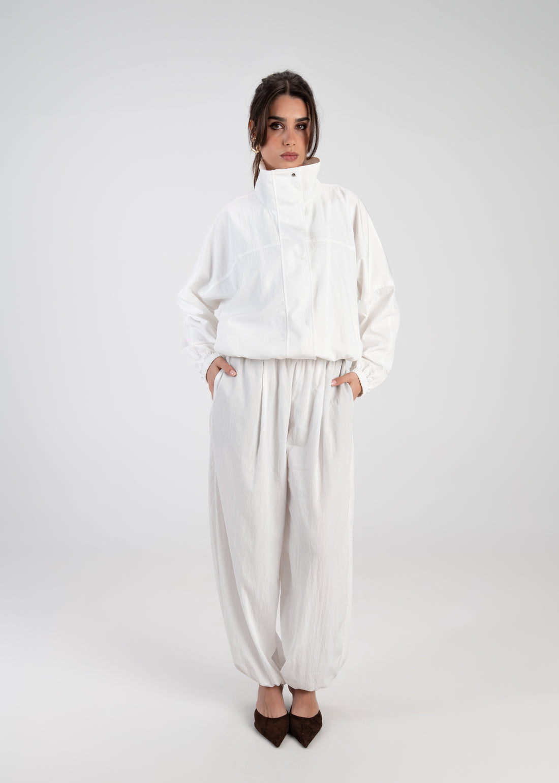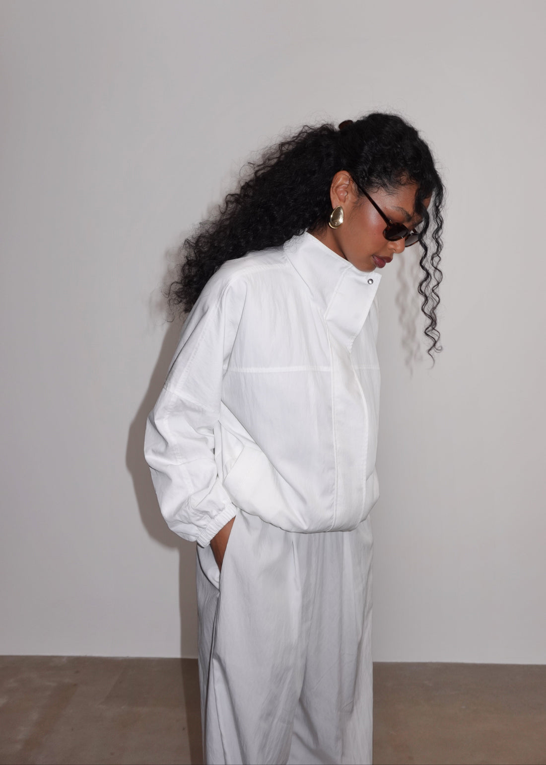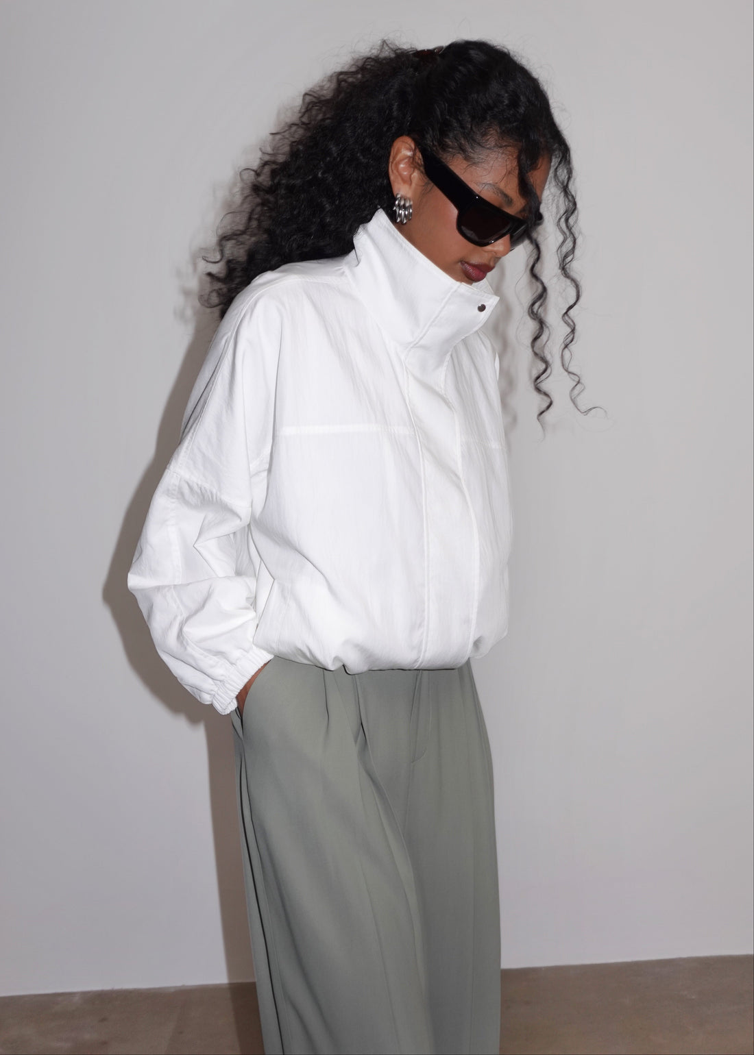 Carter High Neck Windbreaker Jacket – Ivory