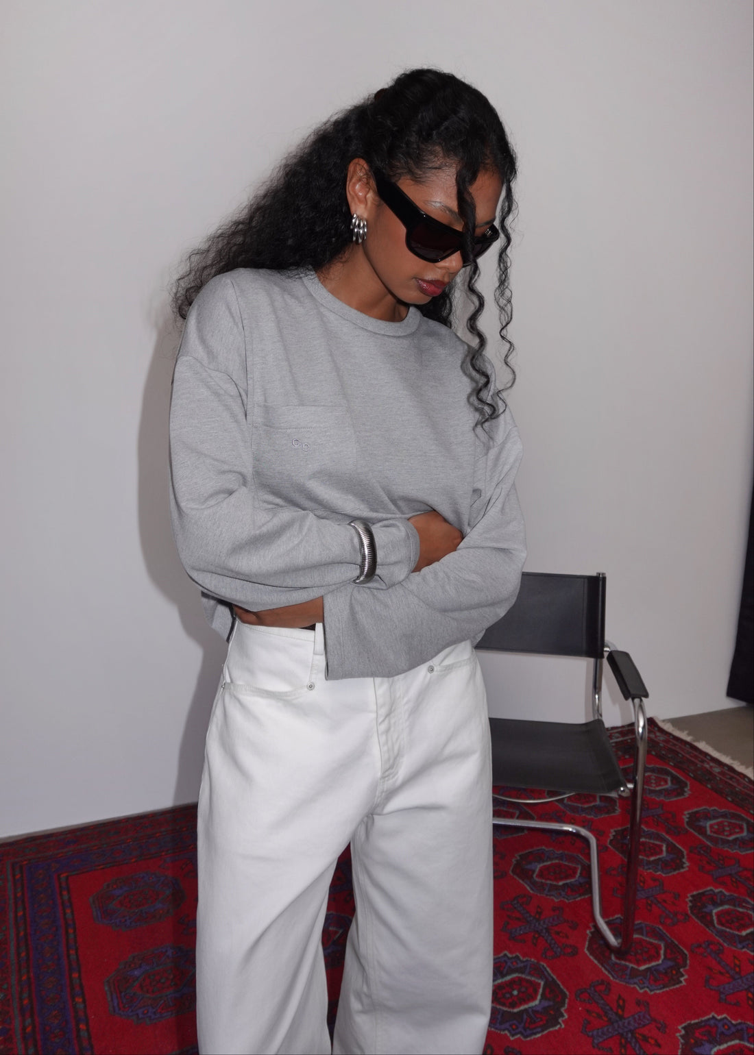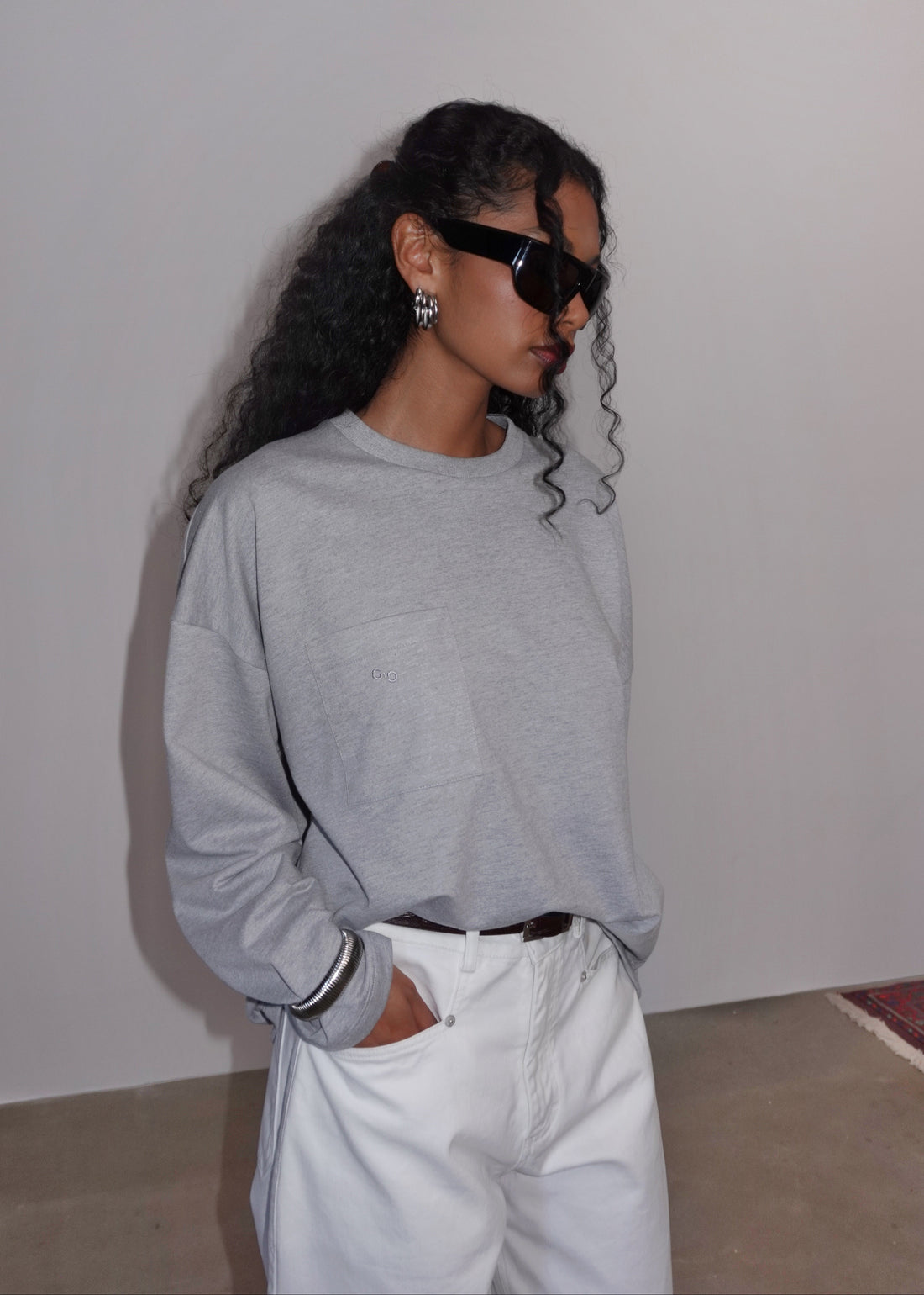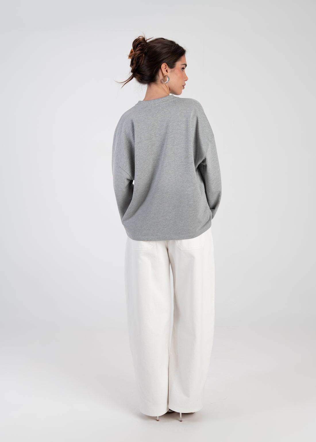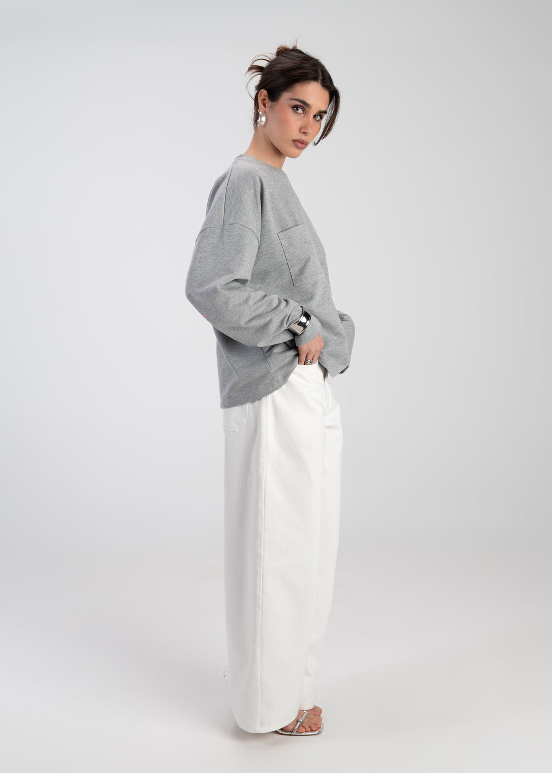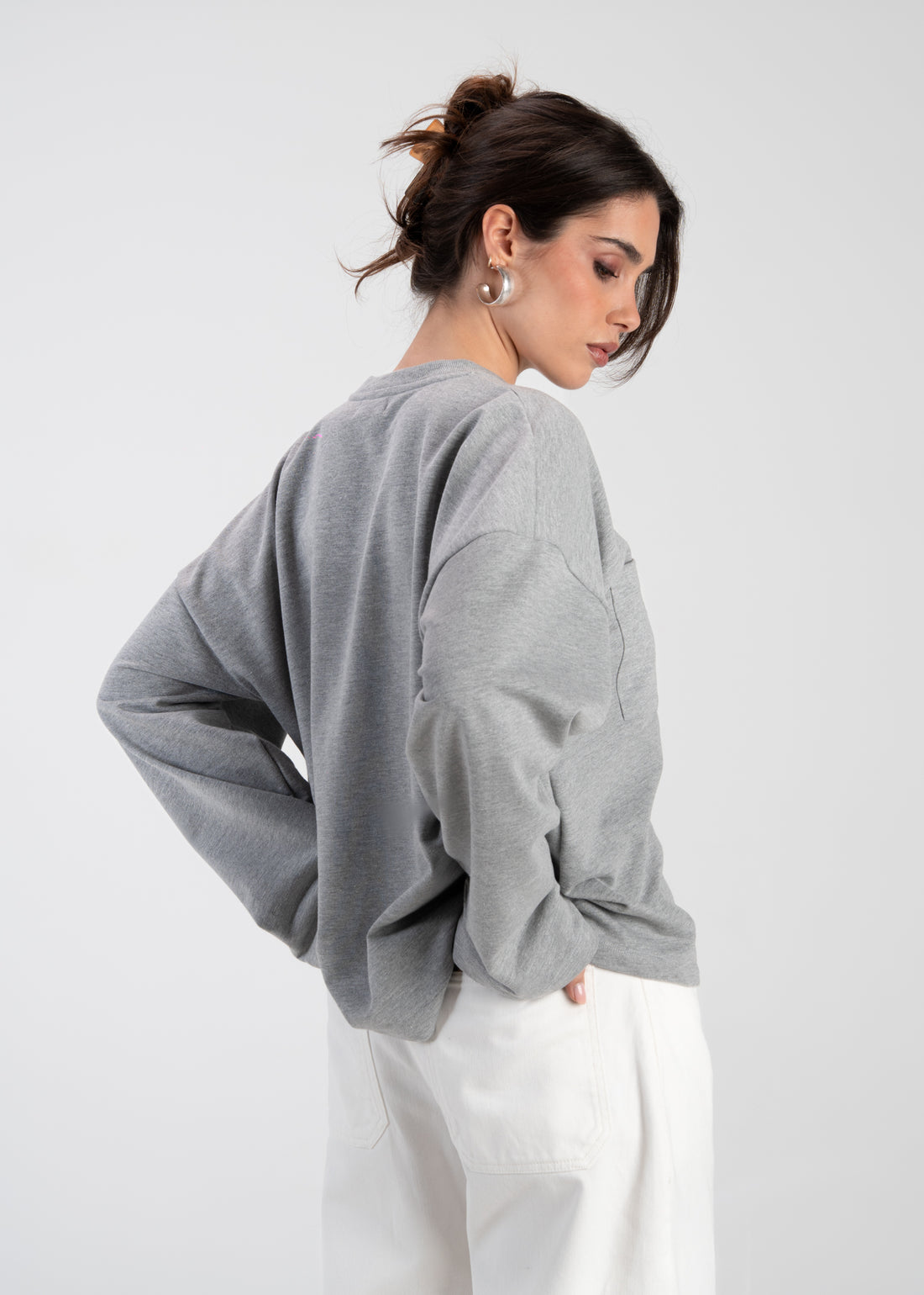 Brady Oversized Long Sleeve Top - Grey
