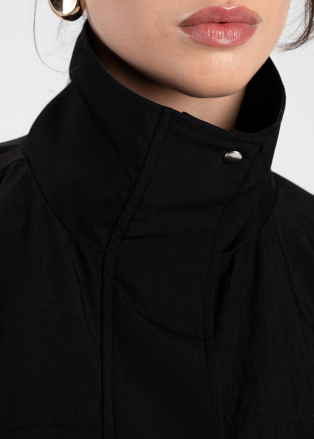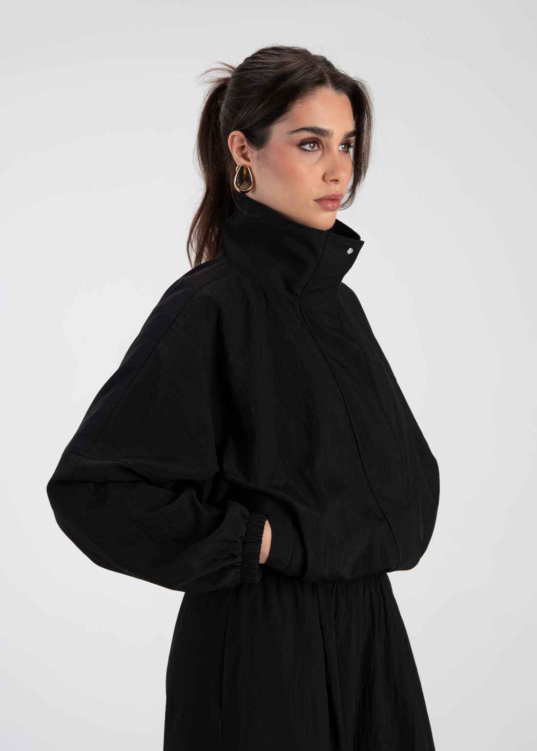 Carter High Neck Windbreaker Jacket – Black