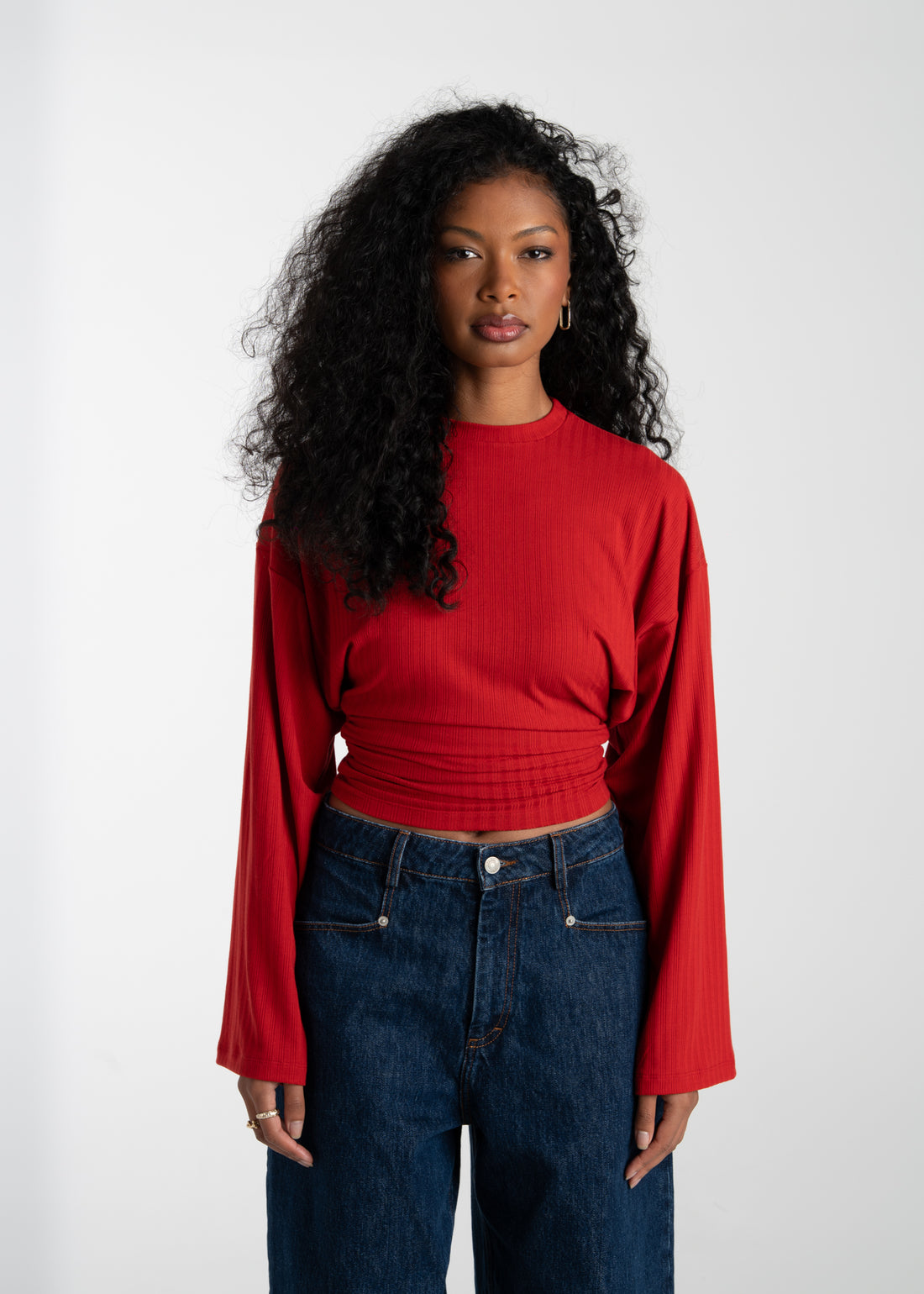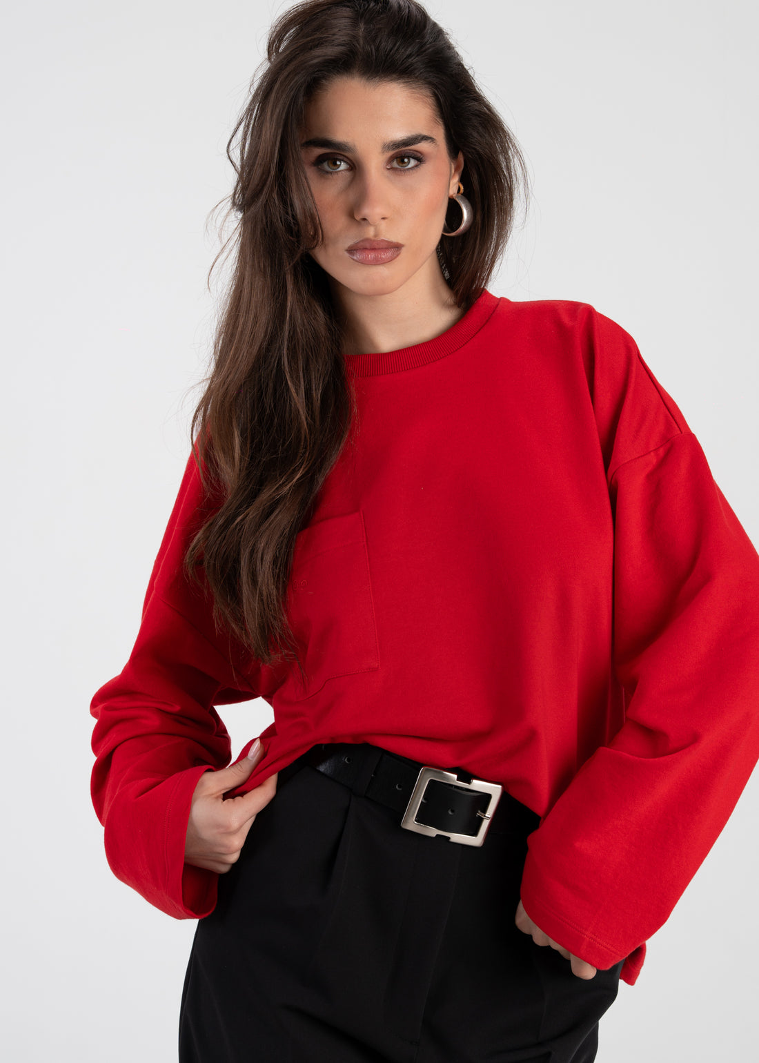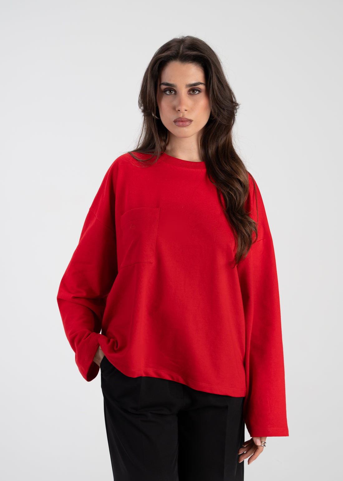 Brady Oversized Long Sleeve Top - Red