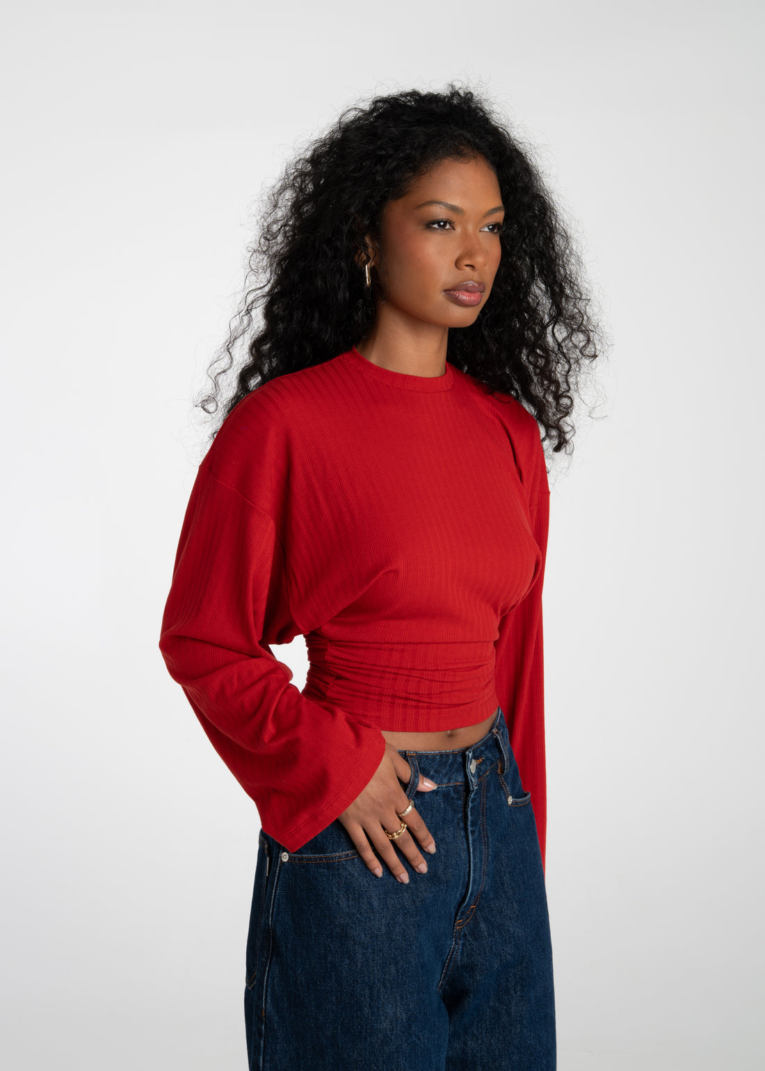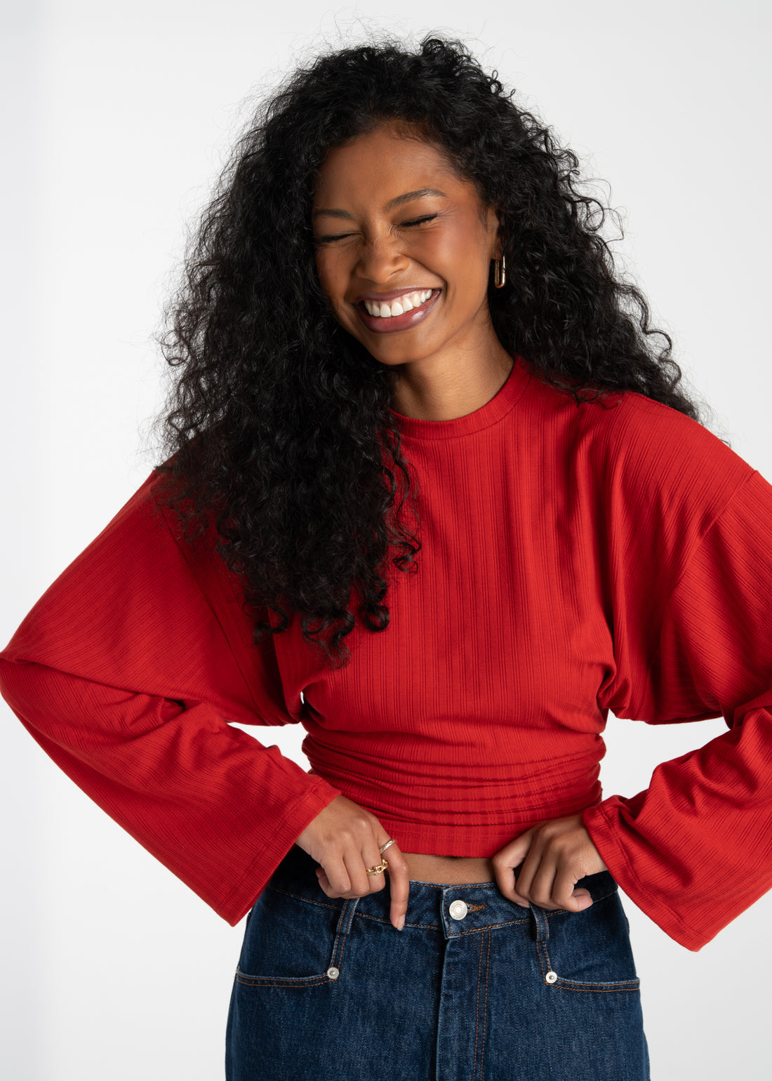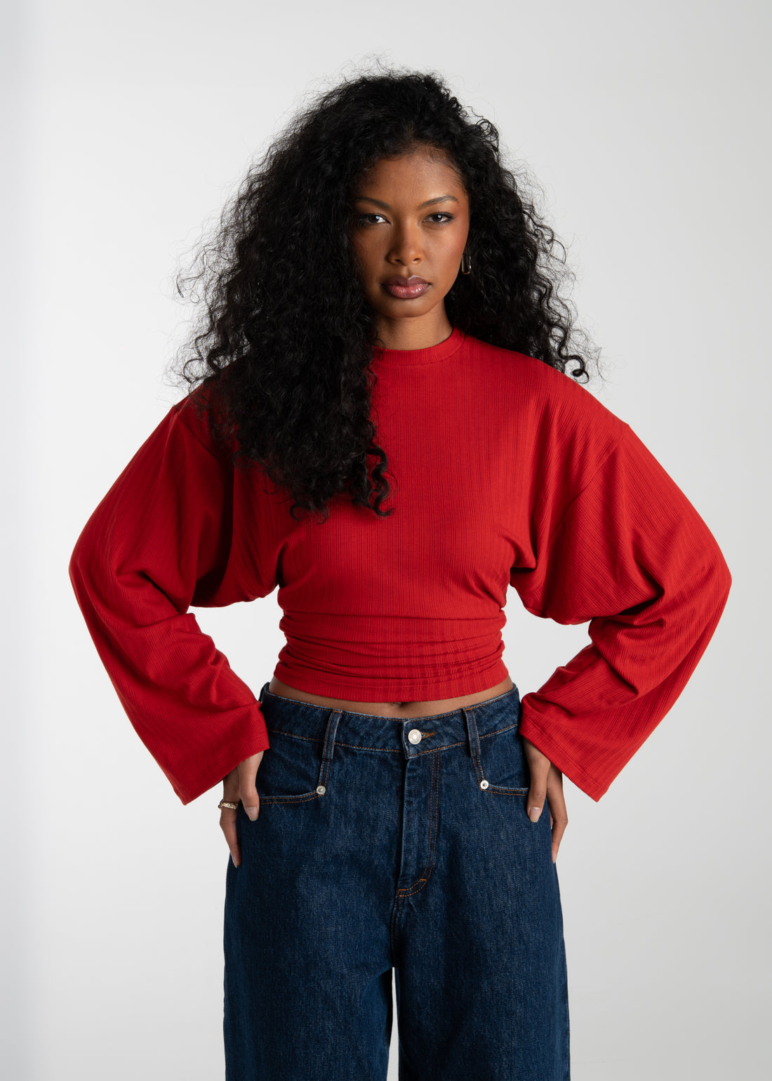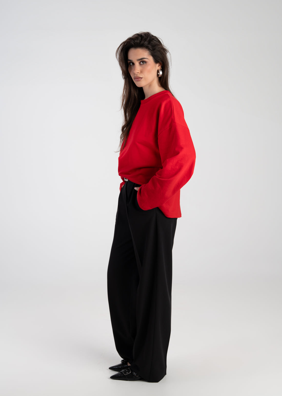 Brady Oversized Long Sleeve Top - Red