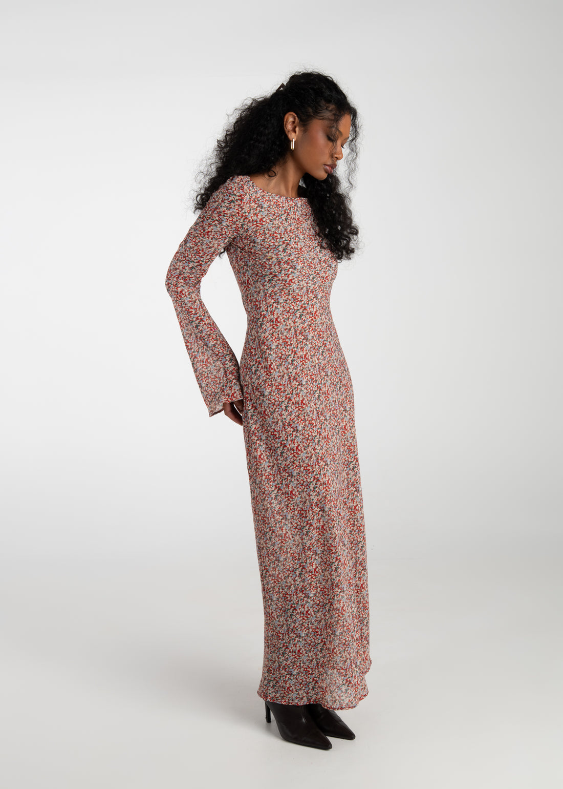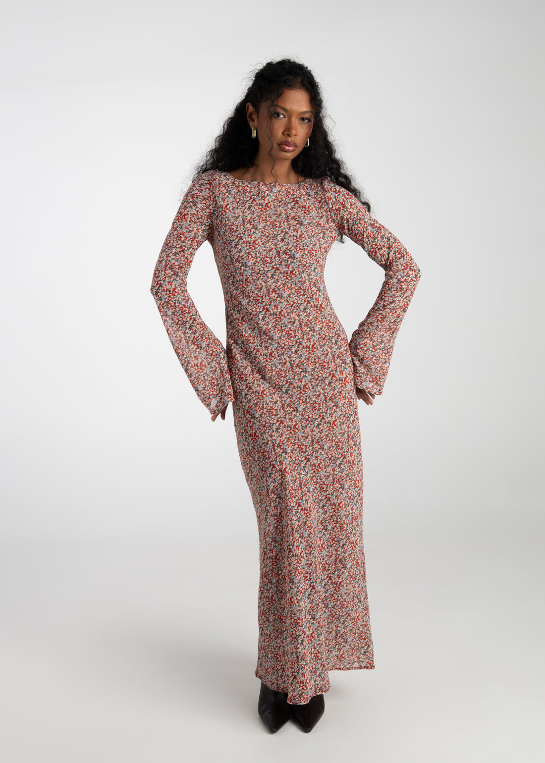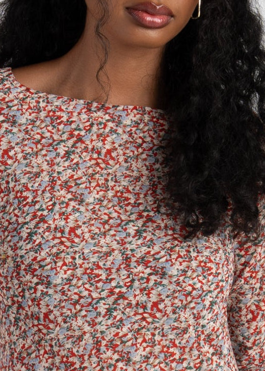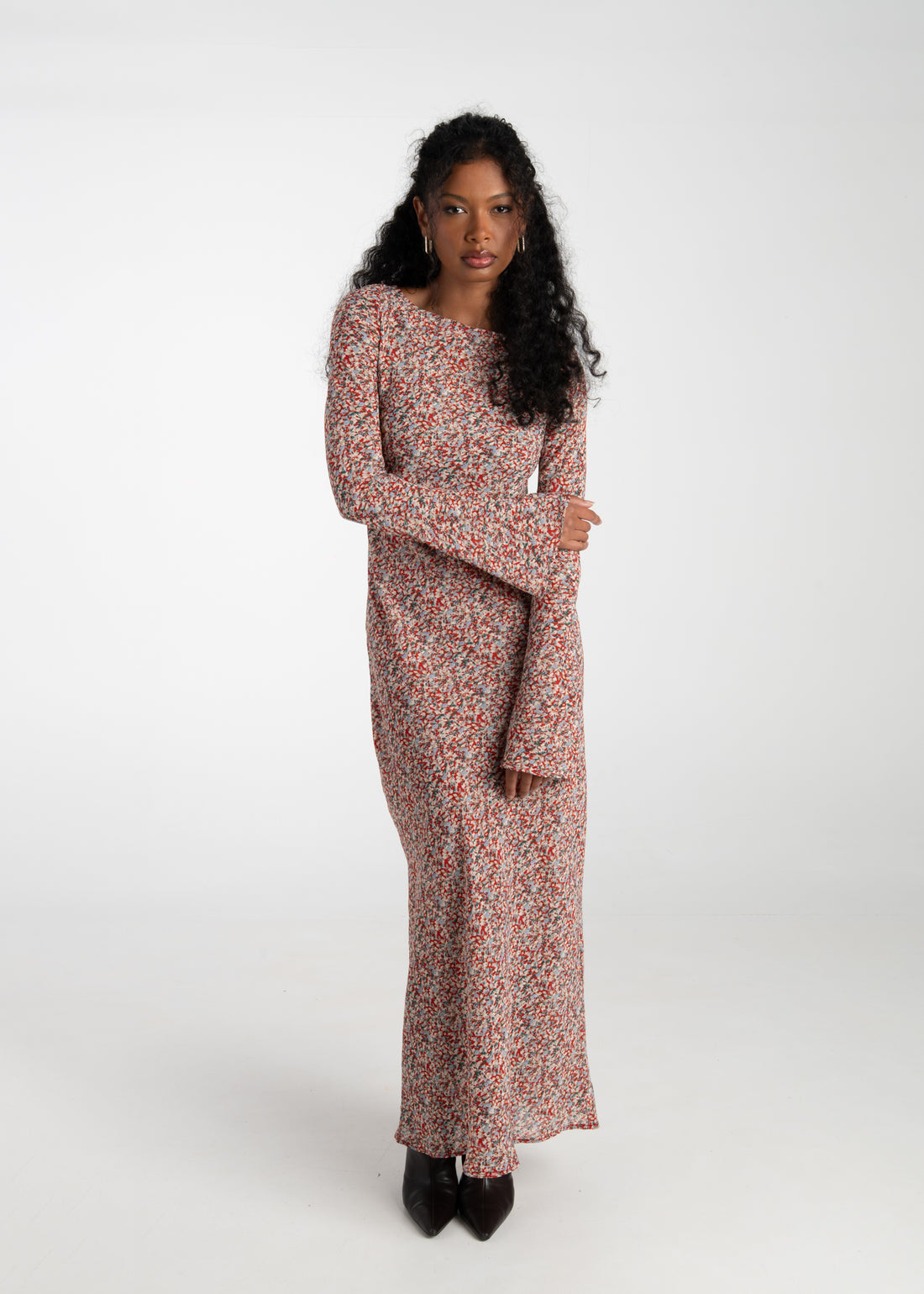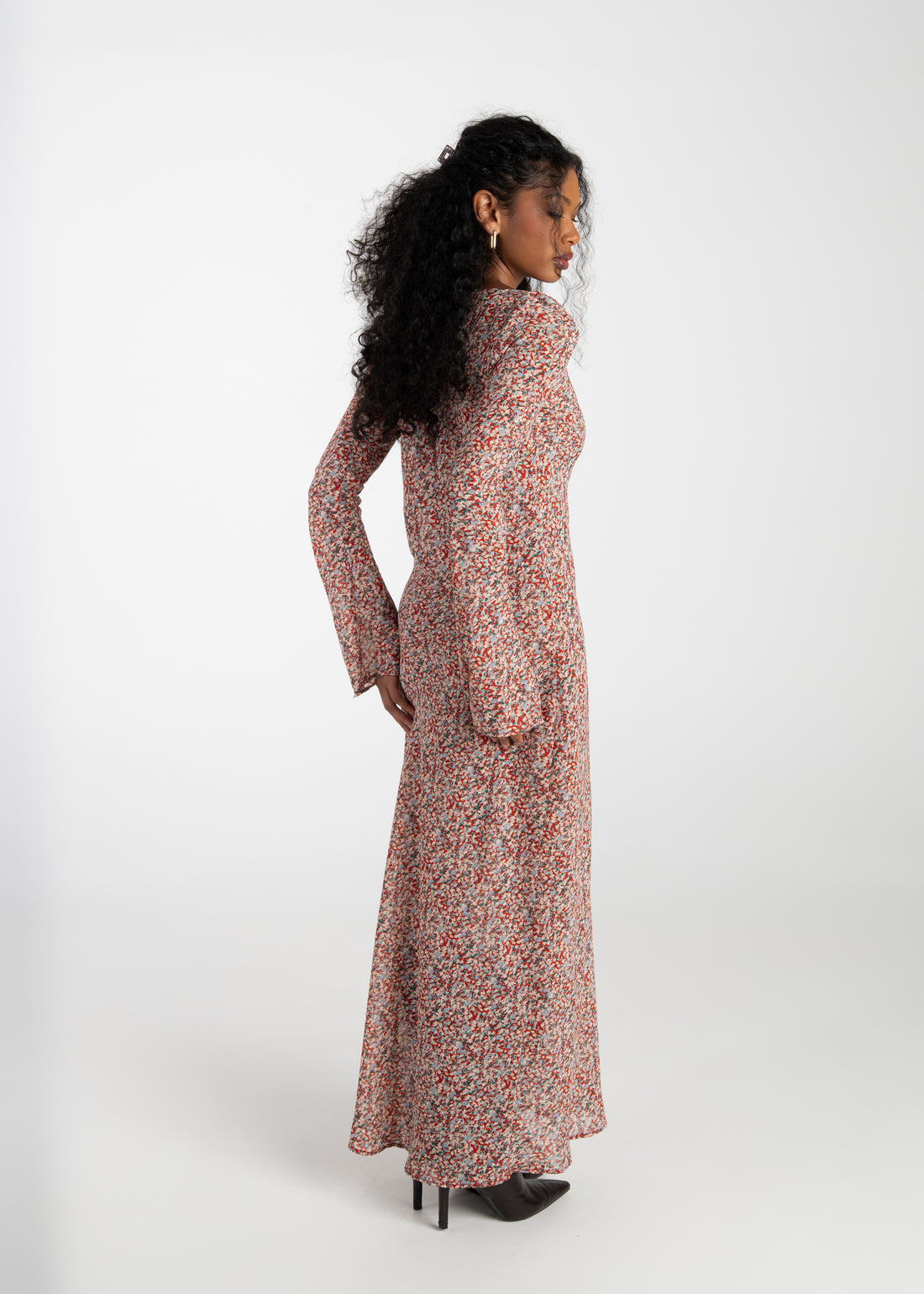 Juliette Bias Cut Bell Sleeve Maxi Dress – Red Floral