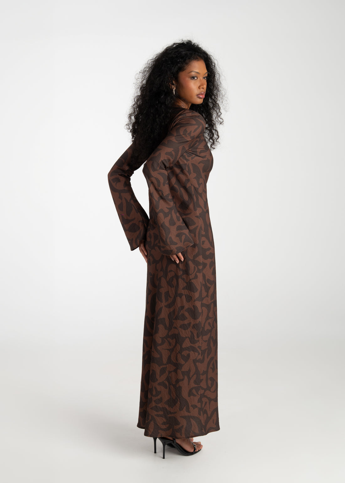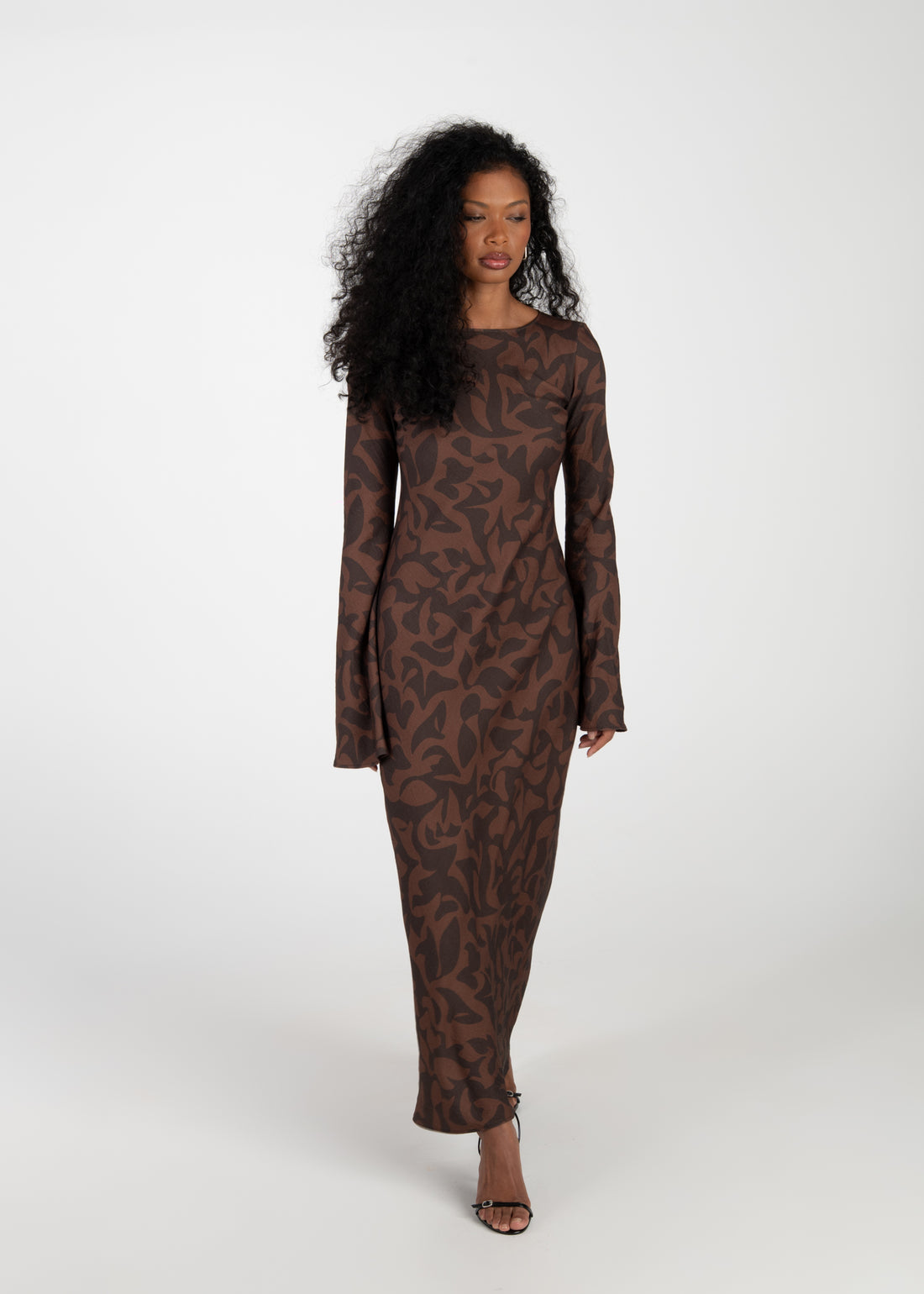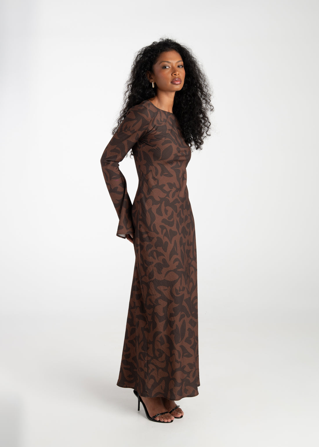 Juliette Bias Cut Bell Sleeve Maxi Dress – Brown