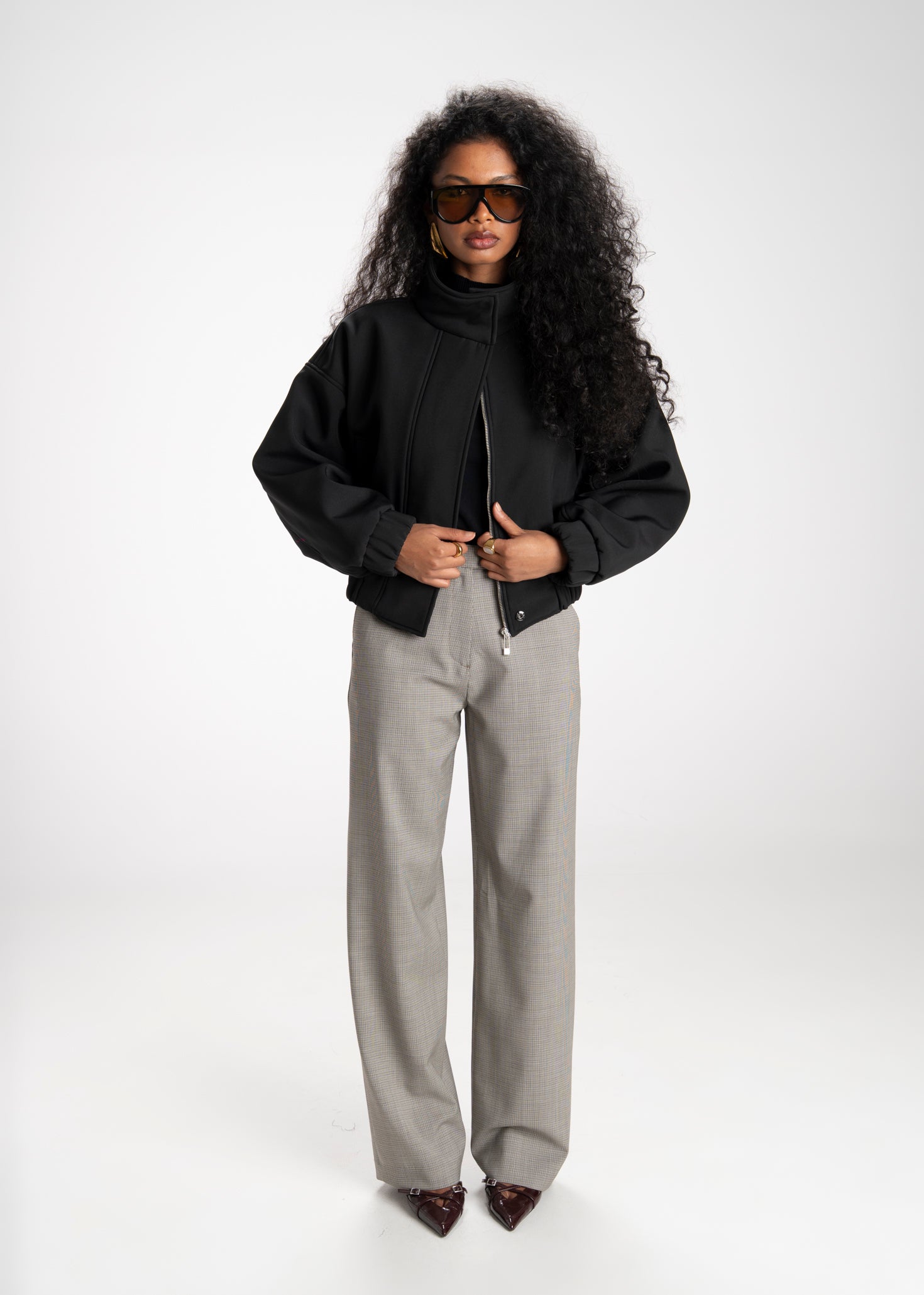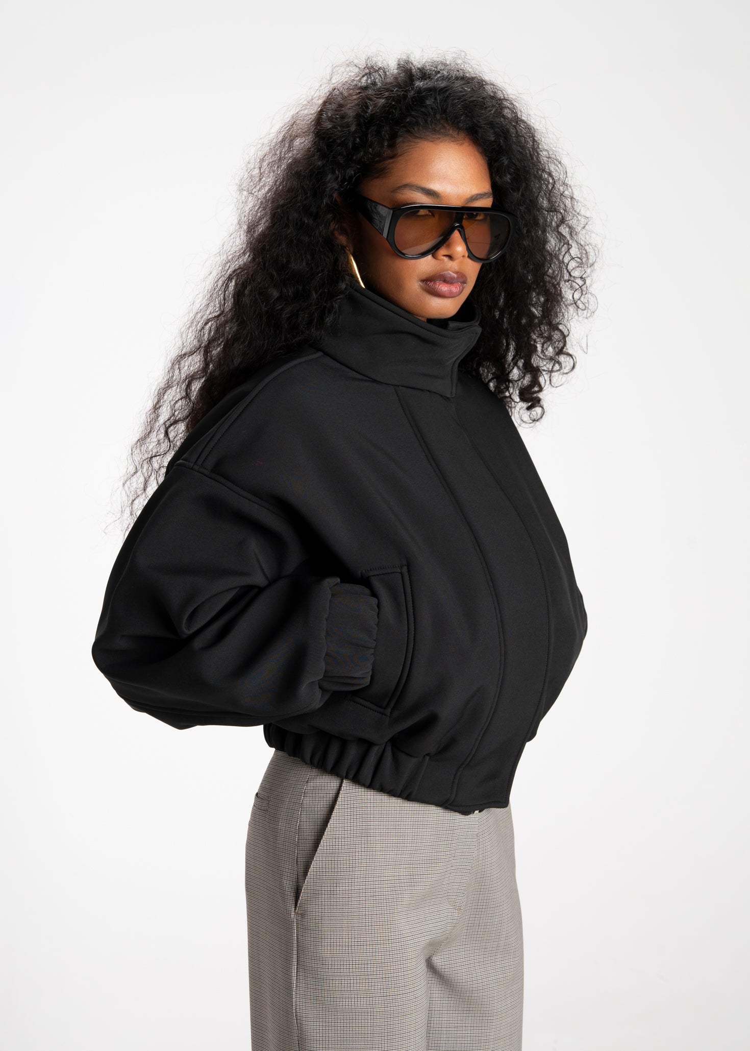 Arctic High Neck Oversized Bomber Jacket - Black